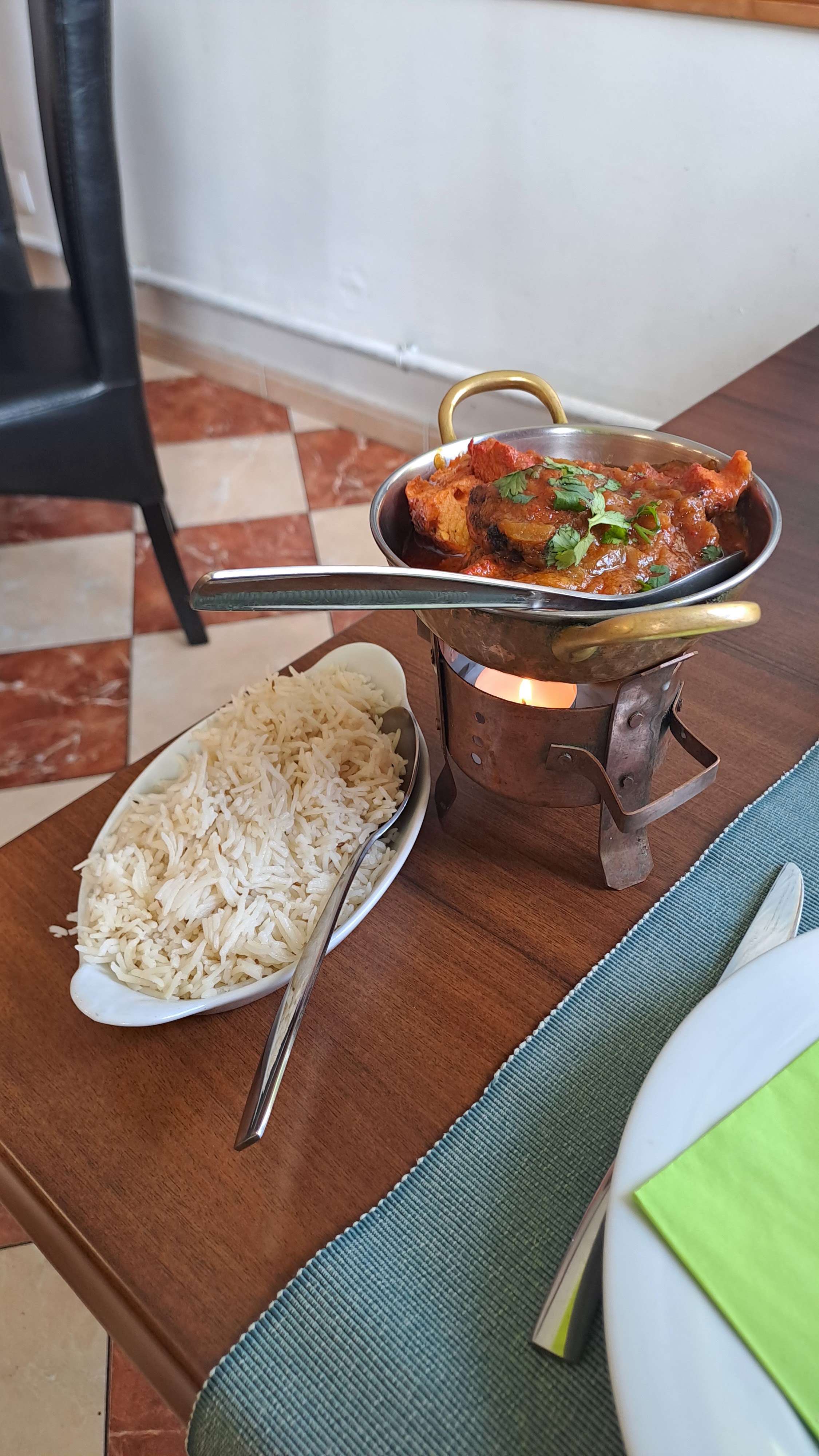 Repas du soir avec un Poulet Tika Masala nickel...