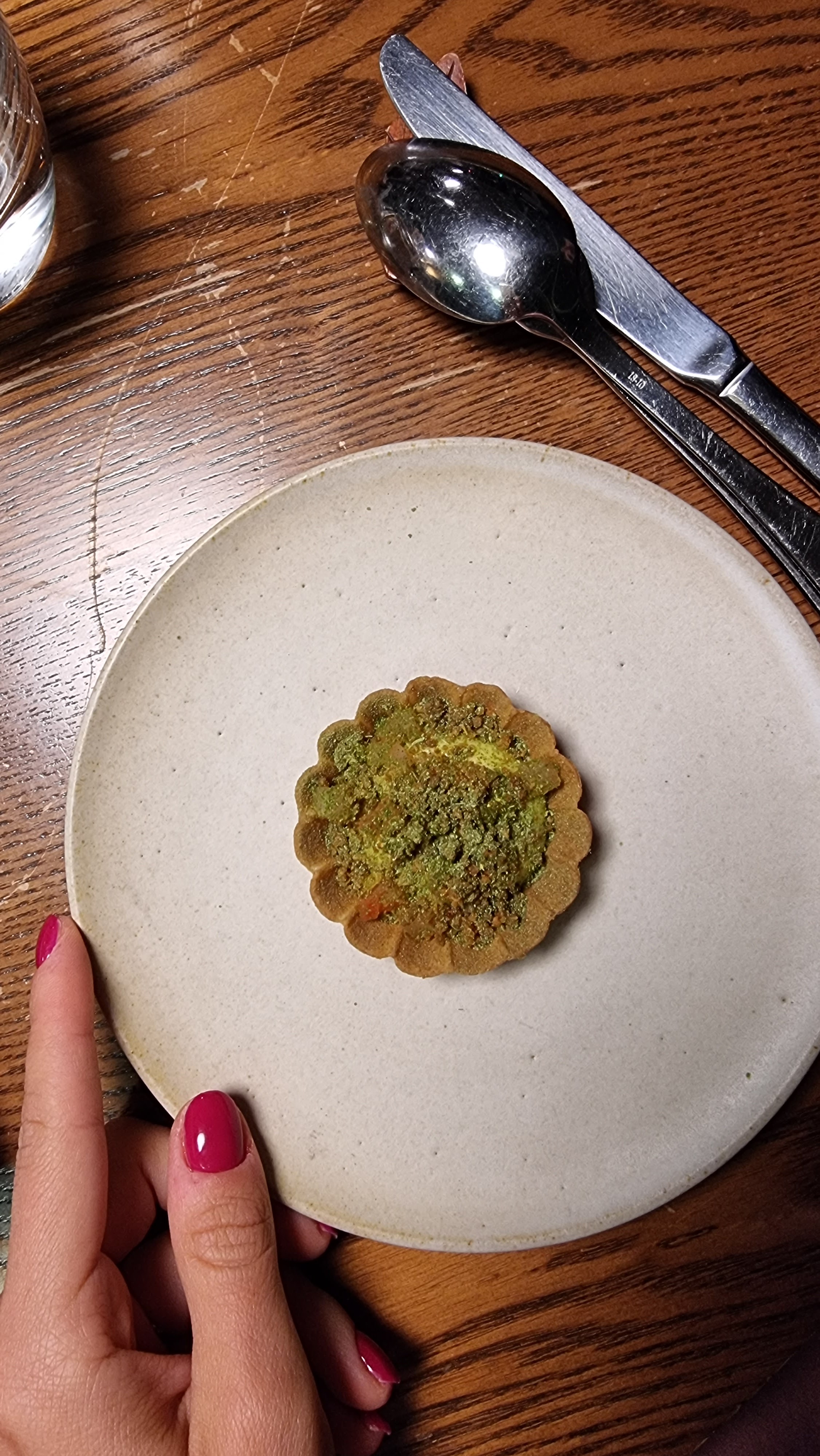 Mon préféré était l'amuse-bouche, qui était une crêpe de pommes de terre avec des trucs dessus. J'ai trouvé que c'était sympa. Par contre, les autres, même si cela peut plaire à certains, ne m'ont pas particulièrement plu en raison de l'acidité très forte qui contrastait avec chaque plat. Cependant, je comprends que les gens qui aiment ça l'adoreraient. Cela dit, la présentation était très belle et je dirais que tout s'est bien déroulé. Juste pour informer également les gens qui envisagent de venir ici, c'est un de ces endroits très « gourmands » avec des plats très petits. Dans l’ensemble, c’était un endroit très intéressant, avec des points positifs, bien sûr. De plus, comme mentionné dans d'autres critiques, pour le prix que vous payez, la nourriture n'en vaut peut-être pas vraiment la peine.
