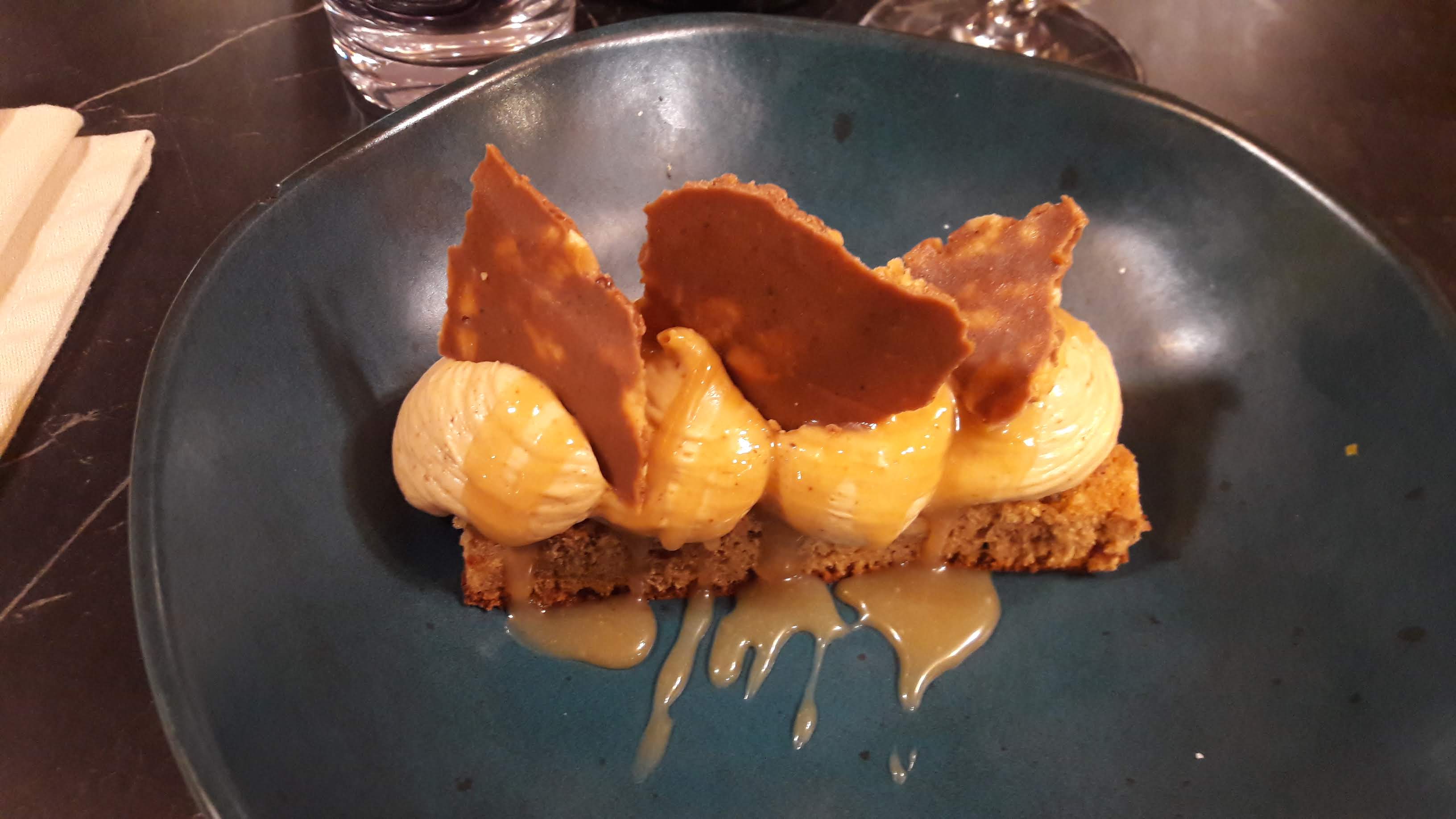 cuisine créative et de saison _ cadre intimiste et soigné _ service attentionné. Expérience du menu à l'aveugle : entrée, plat et dessert choisis par le Chef et accord de deux verres de vin (entrée, plat) sélectionnés selon les plats. Une « sortie ordinaire » transformée en « expérience de qualité » Photo : dessert {ananas rôti, mousse vanille, sorbet citron}
