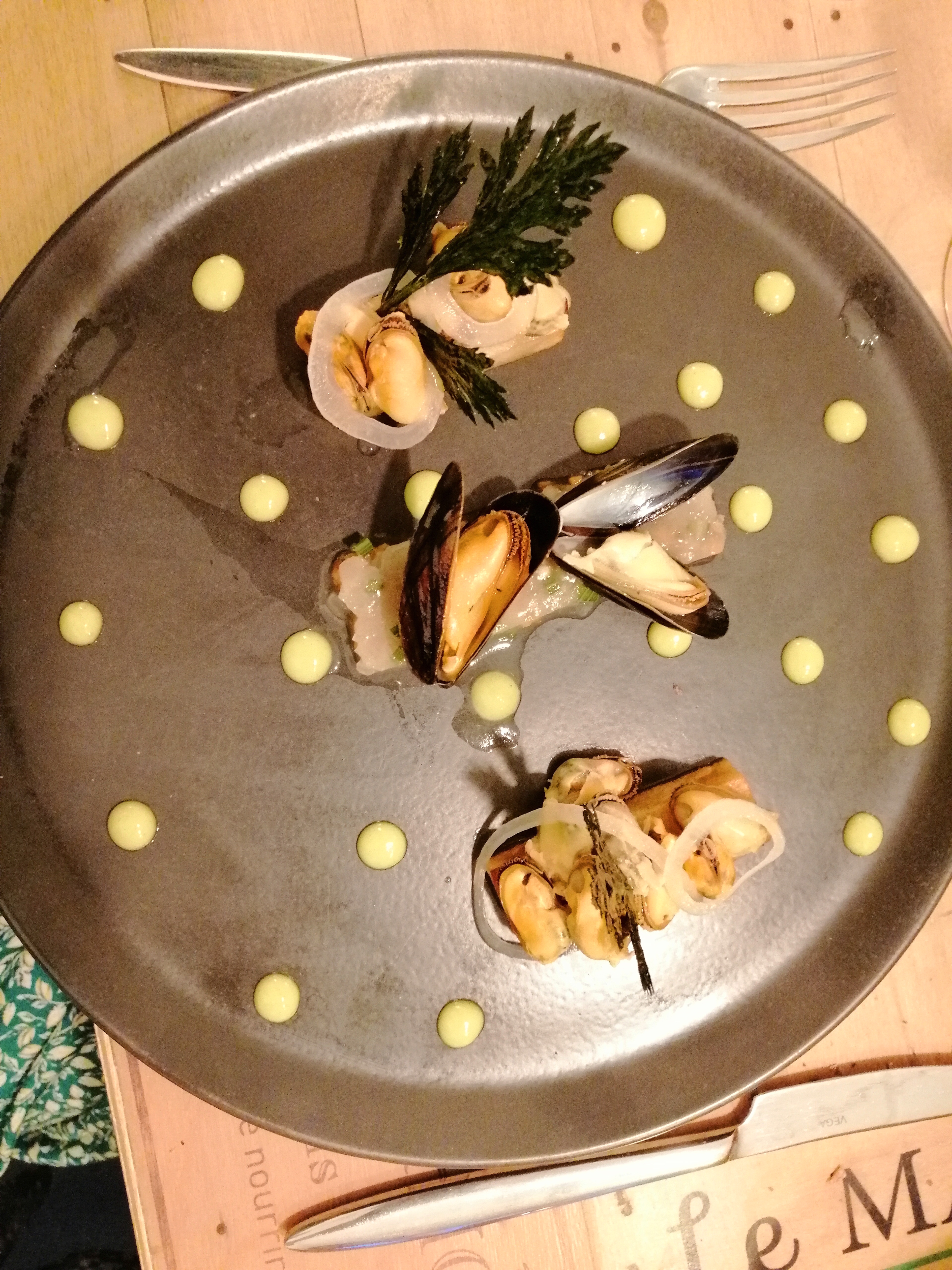 Nous étions parties en week-end sur la côte et cela faisait un moment que j’avais entendu parler du restaurant et j’avais très envie de goûter la cuisine du chef Pierre Chavatte. L’ambiance du restaurant est chaleureuse et invite à des discussions à la lumière douce des jolies ampoules qui semblent s’échapper du plafond. Nous avions, ce soir-là, opté pour des menus Brindilles. Dans nos assiettes nous avons pu déguster des cannelloni de poireaux au haddock puis du lieu noir avec ses moules et son curcuma frais. Nous avons terminé notre repas avec un délicieux dessert café, noix et chocolat qui a ravi nos papilles. Du côté des vins je me suis laissée guidée vers un Pinot gris d’Alsace divin. J’ai aussi apprécié la proposition végétarienne réalisée pour l’une de nous, nous avions prévenu le restaurant quelques jours plus tôt afin que le chef puisse en tenir compte. Le service était avenant et agréable et nous avons passé un excellent moment entre amies ! N’hésitez pas à découvrir ce restaurant qui mérite le détour et où l’accueil tout comme la cuisine invite à la sérénité et à la joie, celle de goûter une cuisine savoureuse, inspirée du terroir et réalisée avec talent par Pierre Chavatte !
