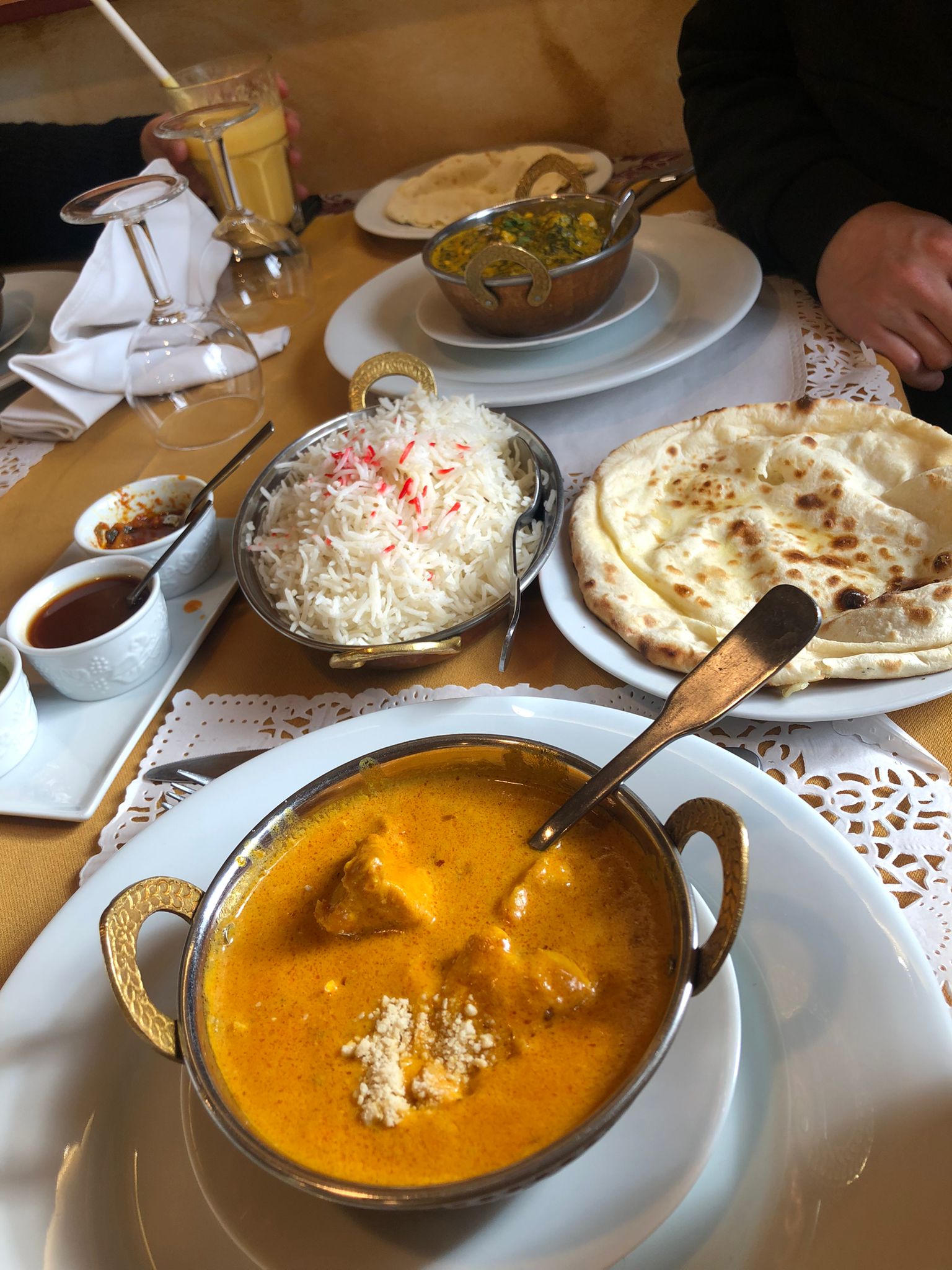 Soirée du 31, service impeccable et très rapide, plats délicieux très goûteux et raffinés, bien installé près du chauffage sur des fauteuils confortable. La salle est grande mais pas bruyante bien décoré avec des musiques indiennes pas trop forte pour pousser l'évasion jusque bout. Le riz est exceptionnellement bon je conseille particulièrement l'agneau au caviar d'aubergine et le butter chicken. Les beignets d'oignons sont exceptionnel également. Le tout pour des prix très raisonnables je recommande à 1000% foncez vous ne serez pas déçus. J'y retournerais sans hésiter