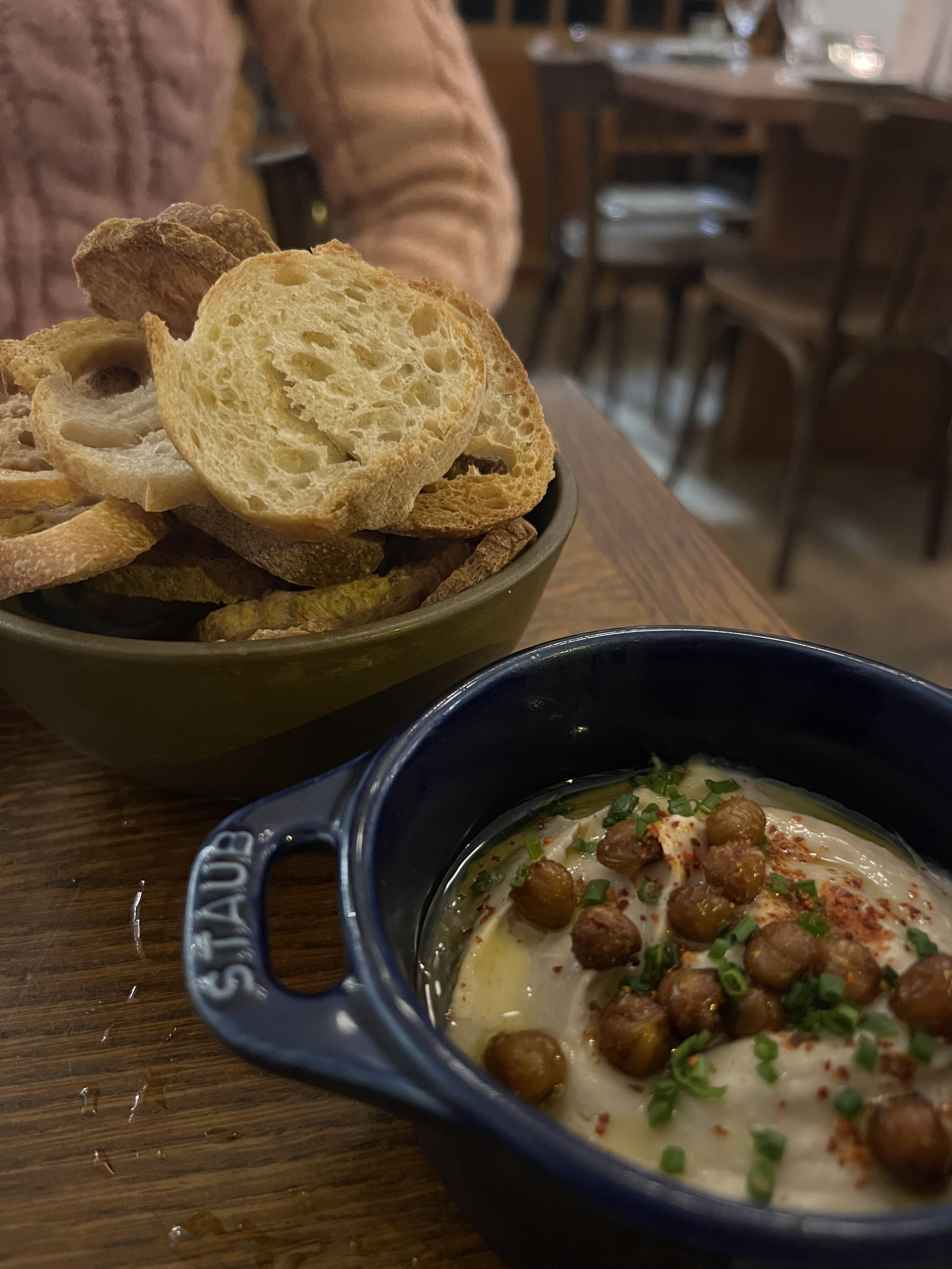 Nous sommes venus ici après avoir lu les bonnes critiques mais avons été globalement déçus de l'expérience. A notre arrivée, nous avons été placés entre deux tables étroites alors que le reste du restaurant était vide. Le personnel n’était pas très attentif tout au long. Finalement, nous avons demandé à déménager lorsque d'autres invités avaient des amis qui entraient dans le restaurant et parlaient très fort à notre table. La nourriture était alors malheureusement extrêmement fade. Le houmous de chou-fleur était fade, la salade de poireaux et de fromage bleu était froide et le fromage bleu avait plutôt le goût d'un brie, etc. Le meilleur plat était le brie frit qui était bien sûr délicieux. C'était assez cher pour de petites assiettes et nous n'avions même pas de plat principal. Peut-être que les plats de viande seraient meilleurs. Pour être honnête, je ne le recommanderais pas, surtout après avoir mangé un fabuleux repas à Paris hier soir pour beaucoup moins cher, et avec un personnel chaleureux et attentionné et une atmosphère conviviale.