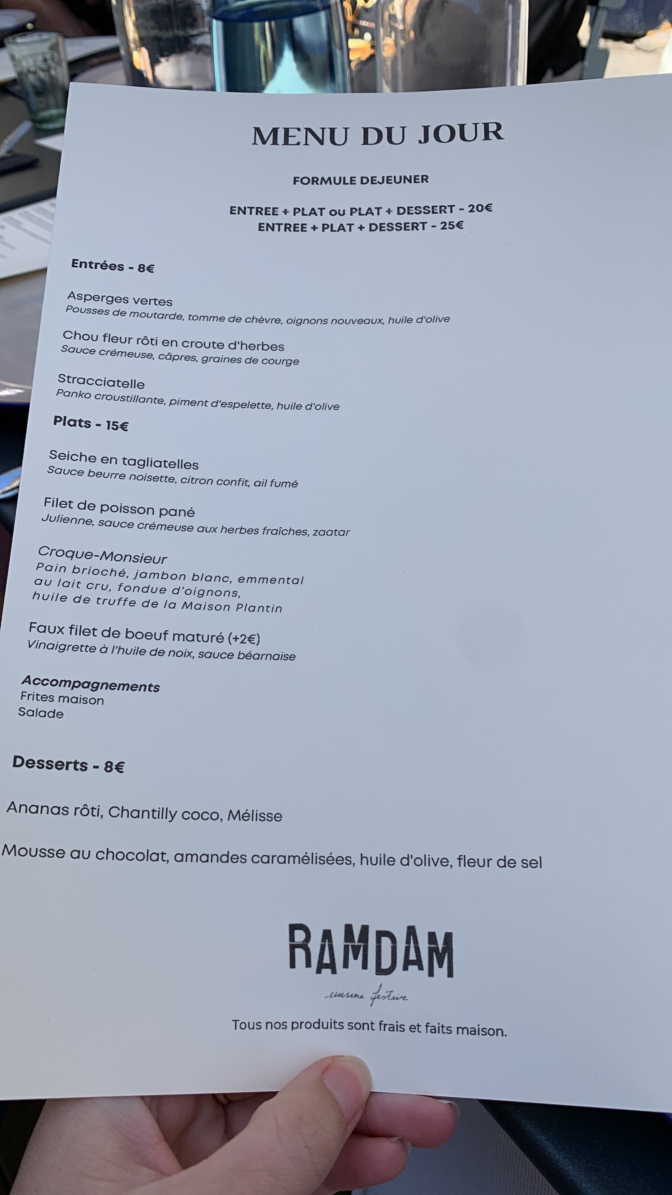 Quel bon moment ! La nouvelle carte est top, les plats sont plein de saveurs , gourmands, bref délicieux ! Le service et l’équipe sont parfaits et l’ambiance est très conviviale. Une belle soirée assurée au Ramdam ! Nous y reviendrons, c’est certain !
