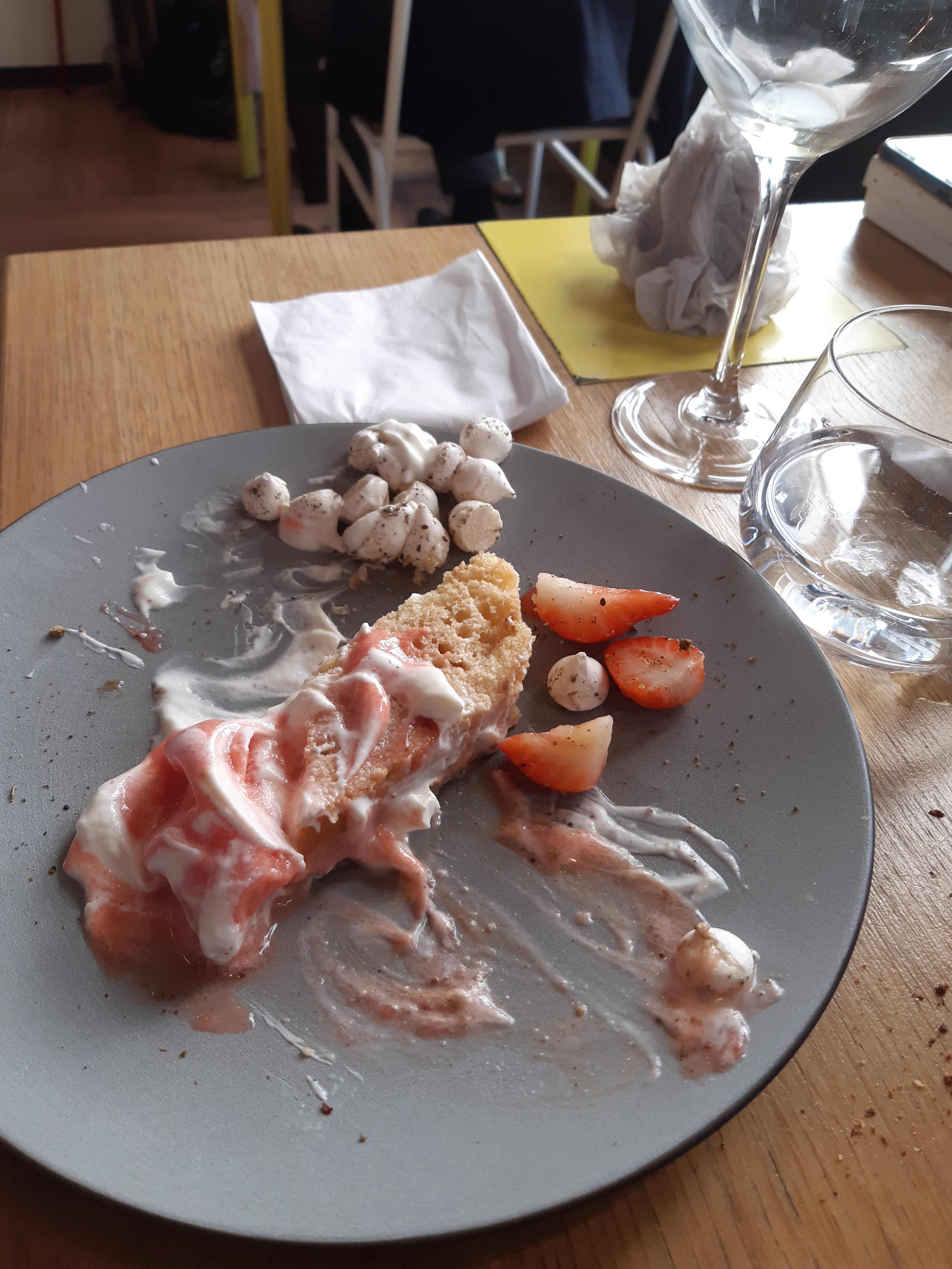 En vrai je n'ai aimé ni mon entrée (topinambours shitake) ni mon plat (truite). C'était trop acide ou trop amer et pas très équilibré. En revanche la dessert (guimauve brulee et glace au curry) était fou. Et j'ai goûté l'autre plat dans lasiette de mon copain et c'était fou. C'était très bien présenté. Donc en gros ils font des associations pas toujours maîtrisées et vous pouvez soit tomber sur un truc génial soit un truc à pas garder. Dans tous les cas à 26euros le menu entrée plat dessert je veux bien être le cobaye. (La personne qui m'accompagnait a tout aimé de À à Z je précise )
