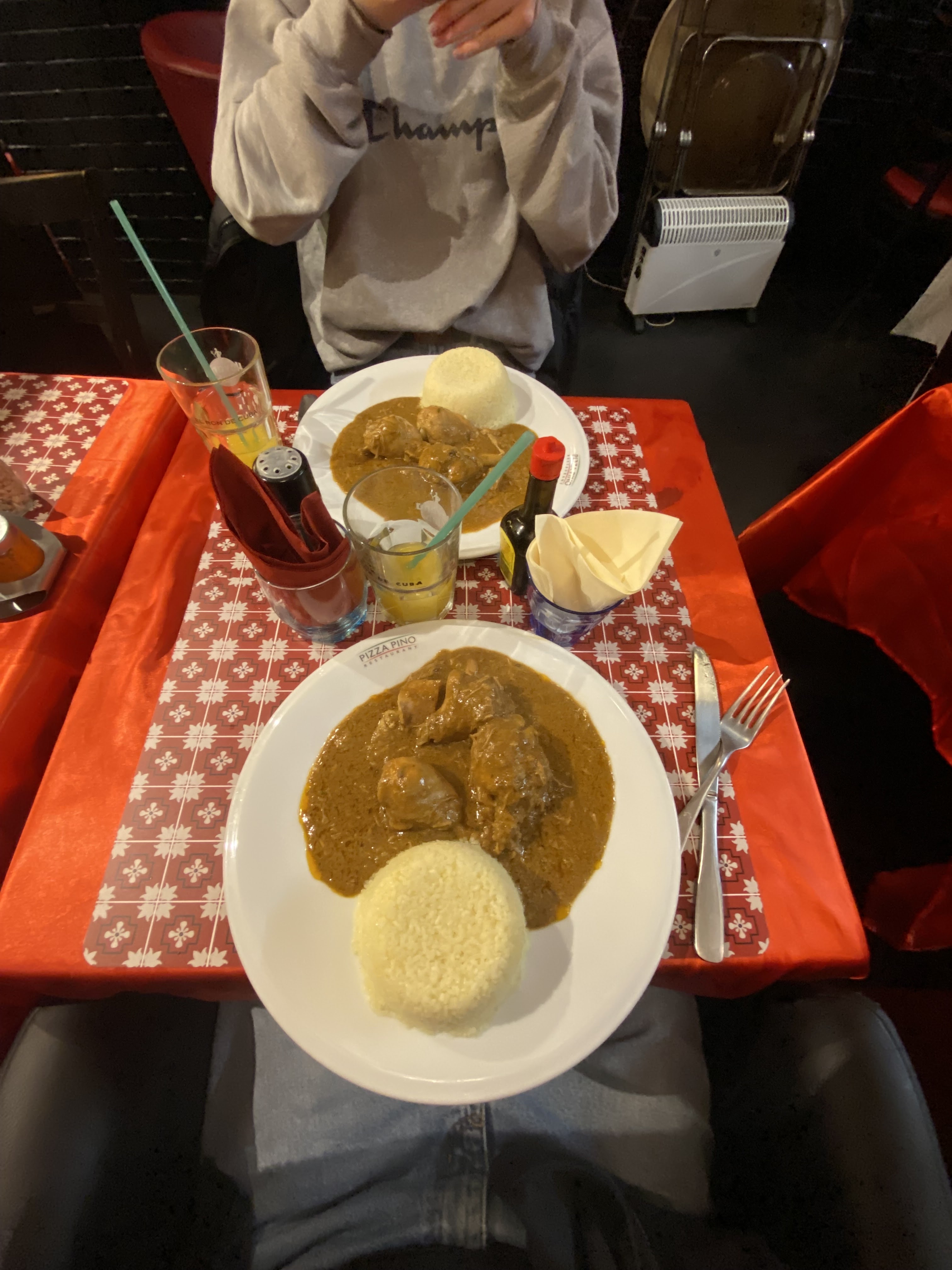 Somptueux et délicieux. Ce sont les deux mots qui me viennent lorsque je souhaite décrire ce merveilleux moment passé. Nous avons opté pour un mafé et c’était tout simplement magique, la sauce venait épouser directement le poulet qui lui accueillait à bras ouvert le riz parfaitement cuit. En plus de cela des beignets à la banane nous on été offert, quelle surprise et quelle plaisir. Clarisse est vraiment gentille et aux petits soins. Enfin il est possible d’aller dans une salle en bas avec un set pour les dj directement. J’ai littéralement pleuré sur le poulet. PS: ci joint une photo de ma joie après avoir déguster le mafé !