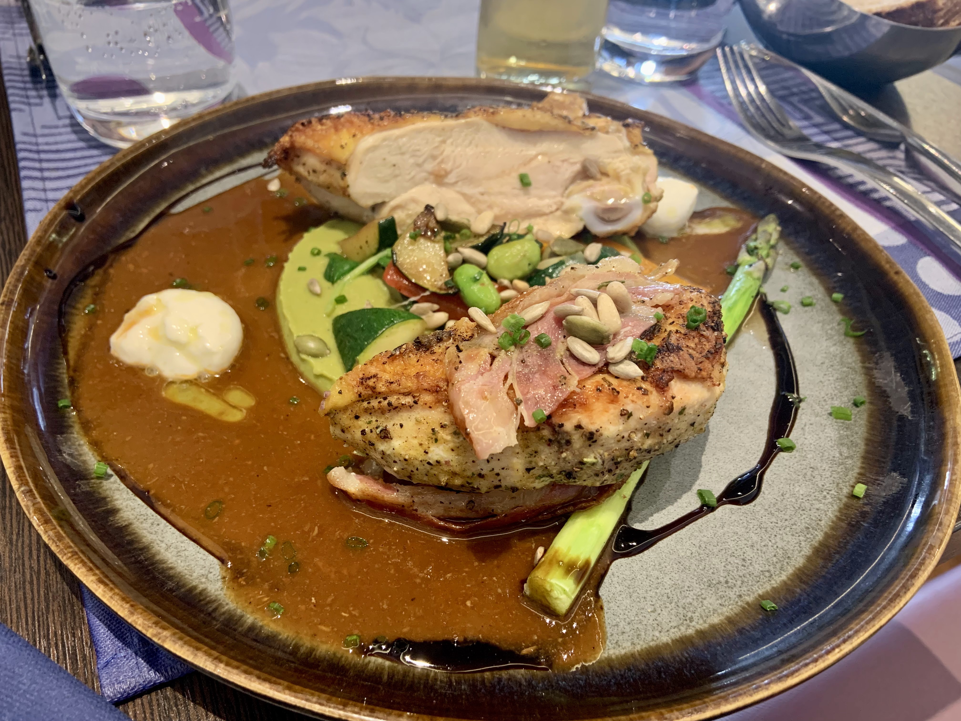 Vraiment dommage l'eau minérale chambrée et le vin blanc pas assez refroidi, et le pain coupé depuis longtemps. Dans l'assiette c'est beau, la décoration est très soignée, service efficace. Cuisine recherchée. Le soir peu de choix entre le menu de saison et le menu gastronomique pas de possibilité de dîner à la carte. Expérience mitigée au final et rapport qualité prix moyen