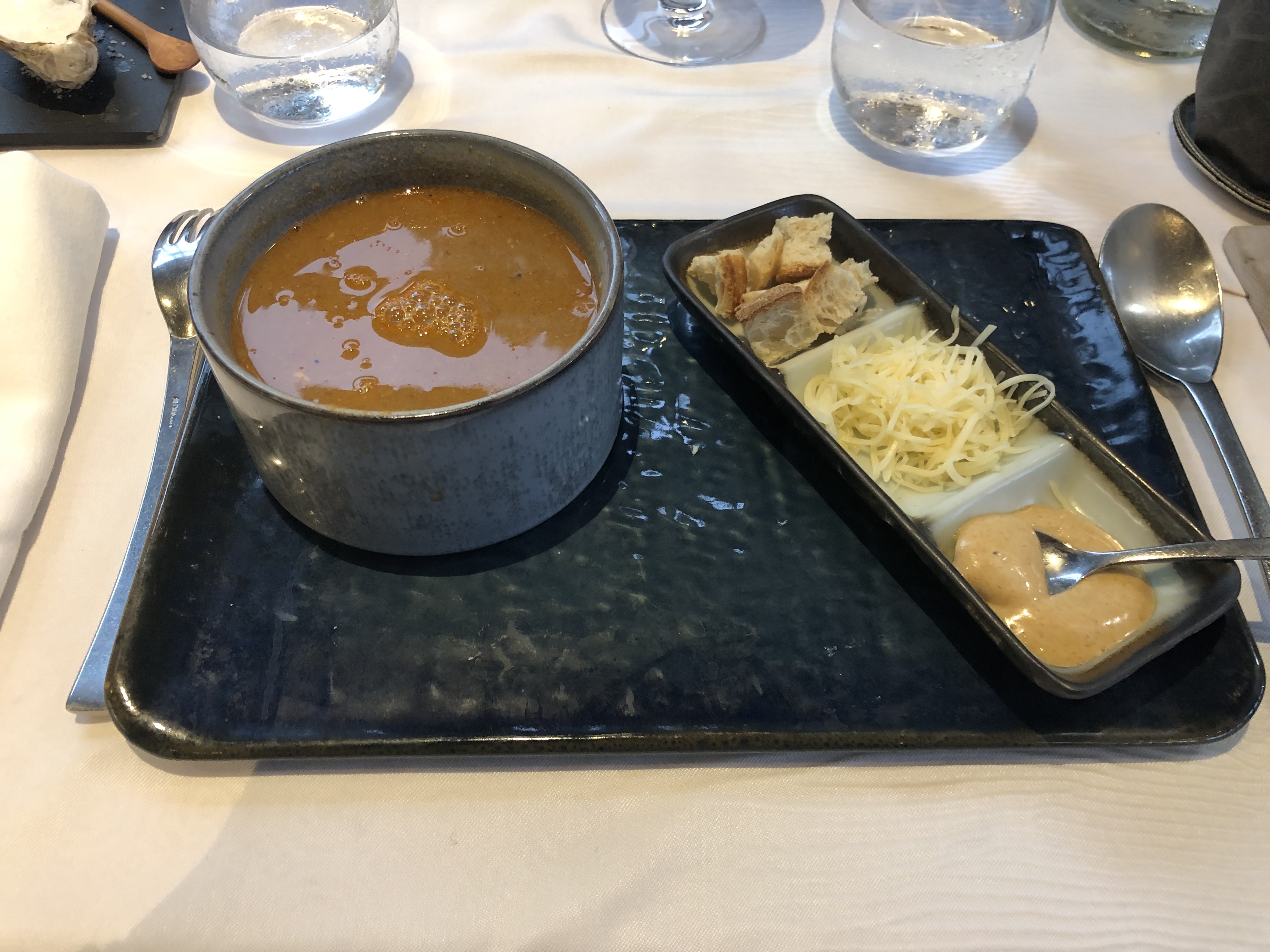 Bof... juste un commentaire sur la nourriture, a part la mousse de betterave en amuse bouche et le pain, plutôt déçus. La soupe de poisson est plus un jus ou un bouillon, les gambas sony plutôt des crevettes roses....vaste débat. Attention à l'acidité du vinaigre dans la sauce du bar si estomac fragile. Et le verre de vin est entre 11 et 15 euros. Sinon service sympa. Bref rien de transcendant.