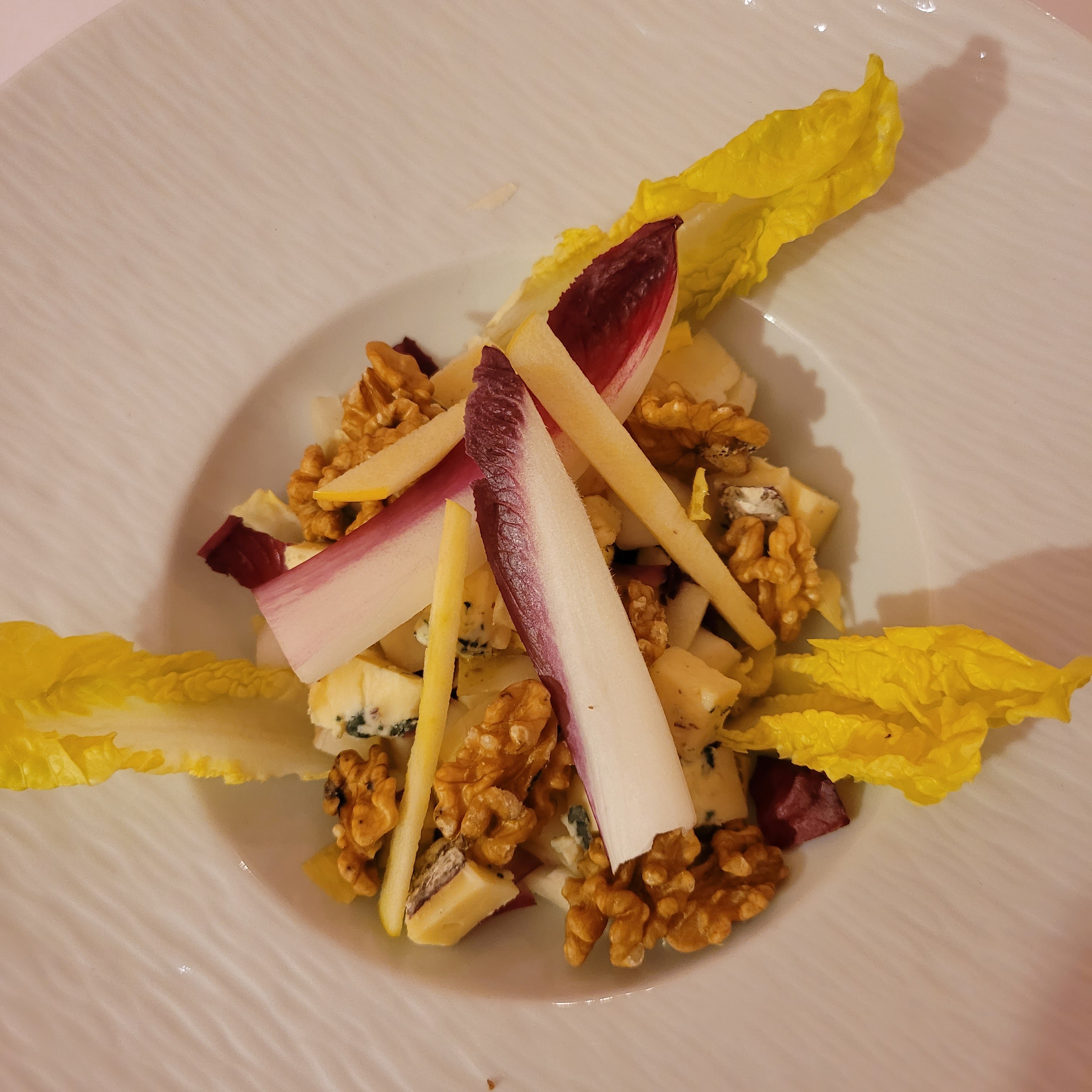 Quoi dire: mise en bouche pas rempli au même niveau, entrée fois gras avec des noix, plat gambas avec une mayonnaise agrémentée, gambas bonne et légumes à l ancienne exceptionnelle, fromages sec avec des noix et noisette mélangée avec du miel, dessert pistache trop chargé, à mon goût, si vous aimez le sucré/salé...vous pouvez ,ça vous plaire ....de mon côté a revoir