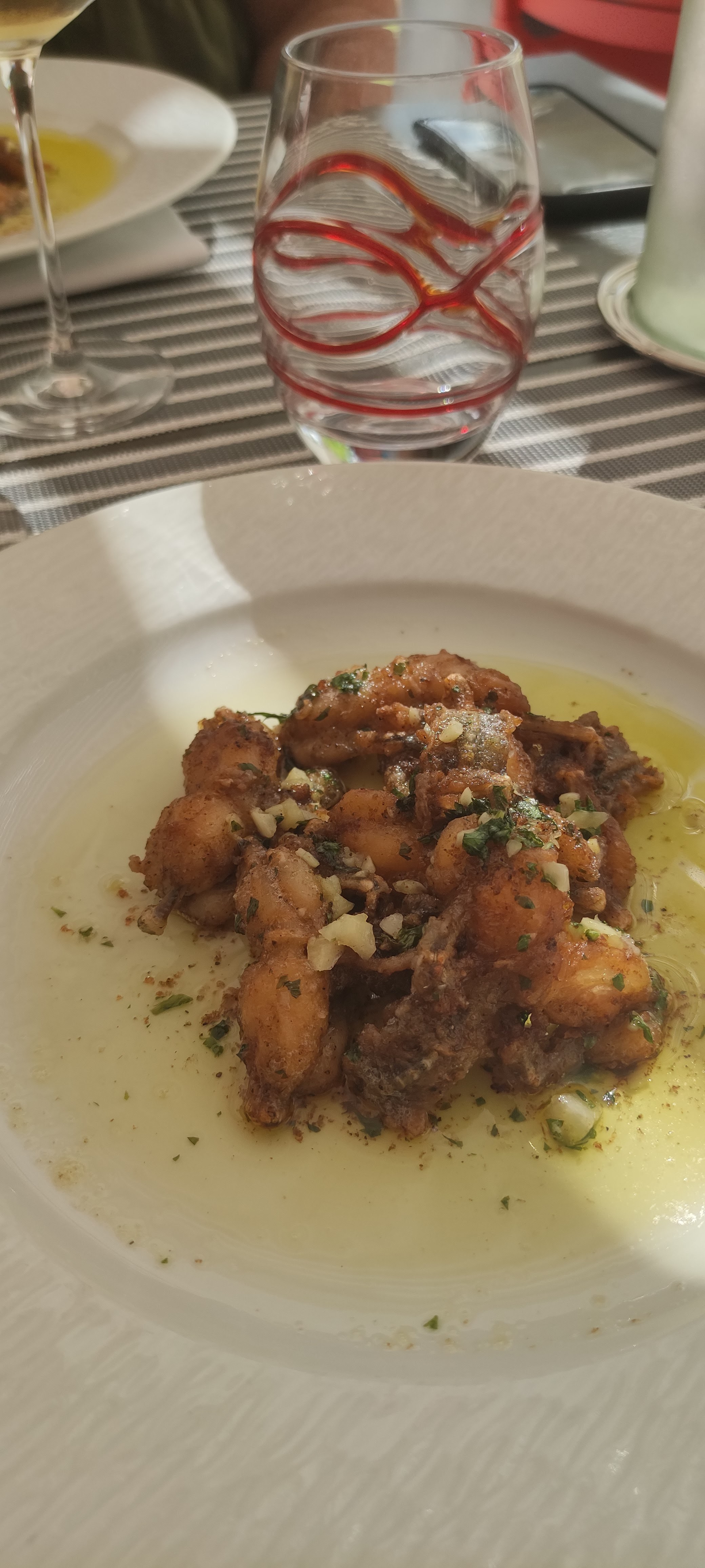 Ne viens pas ici ! Nous avons eu nos entrées qui étaient 2 œufs avec une sauce au vin rouge où les œufs flottaient simplement. Très dégoûtant. La deuxième entrée était une crème de fromage de chèvre au goût déplacé avec une sorte de curry et d'aubergine. Les saveurs n'étaient pas bien assorties et ce n'était pas bon. Le service était en dessous de la moyenne. Nous avons décidé de partir et avons expliqué que la nourriture n'était pas comestible. Nous n’avions pratiquement pas bu de vin ni de notre eau. Pourtant, le restaurant voulait nous facturer 2 entrées, le vin et l'eau. Je ne voulais pas accepter cela, mais ils ont insisté et finalement, j'ai payé 21 euros pour l'eau et le vin, même si ce n'était pas bu. De plus, il y avait des moustiques qui volaient partout, donc nous avons eu beaucoup de piqûres de moustiques pendant que nous étions assis là (et c'était à l'intérieur du restaurant). Certainement pas recommandé.