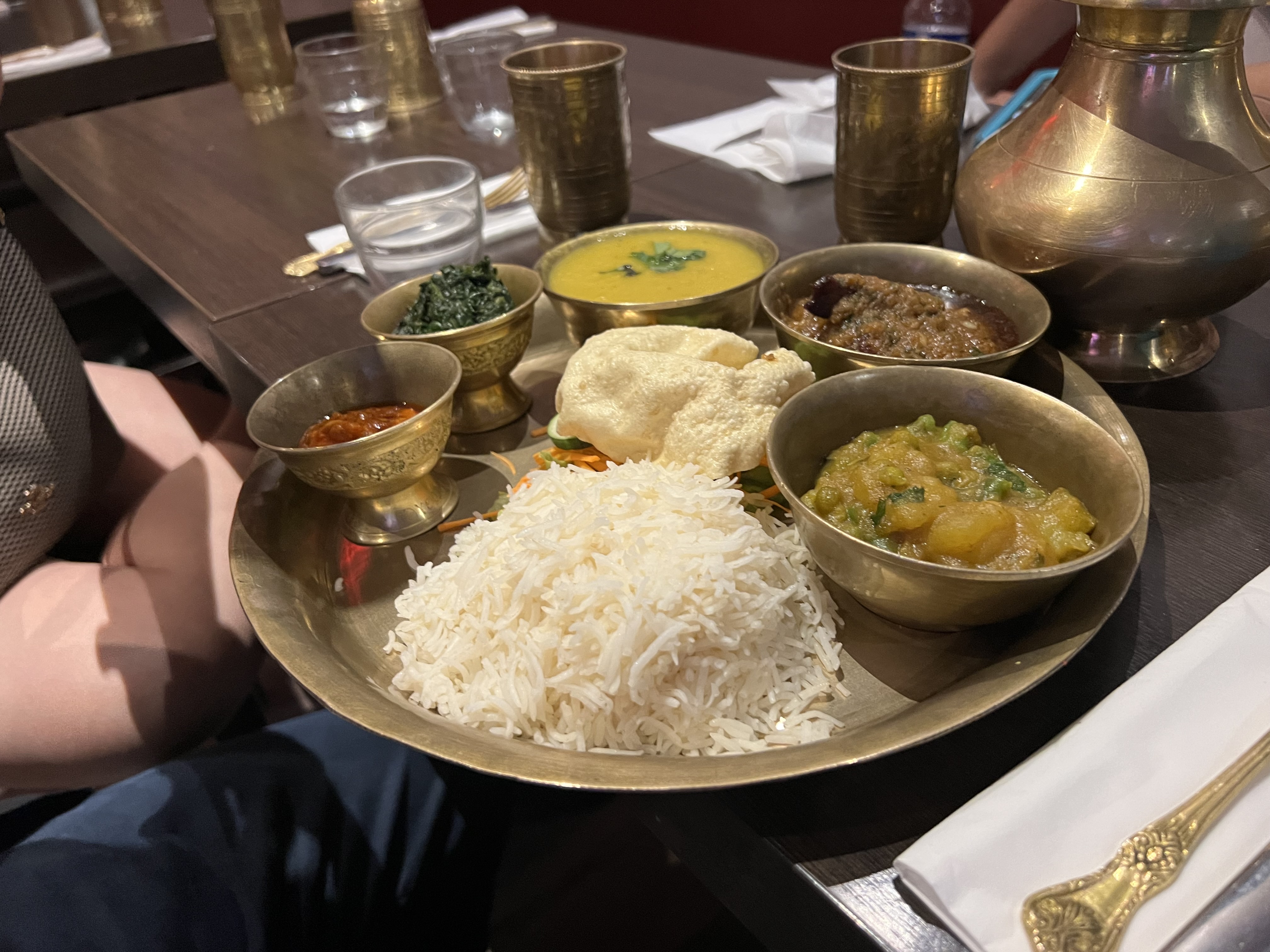 Le Thakali installé dans ce restaurant népalais était absolument incroyable. Chaque composant était parfaitement assaisonné et cuit, offrant une explosion de saveurs tout simplement inoubliable. Si vous voulez un goût authentique du Népal, ce plat est un incontournable ! Namasté 🙏