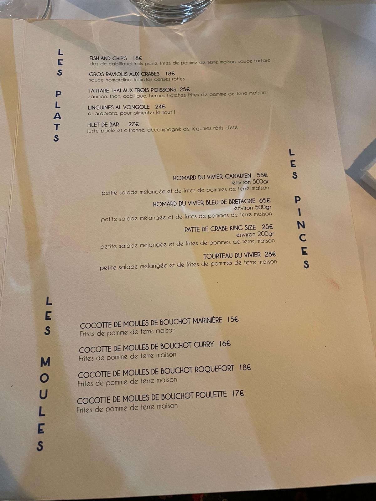 Déçue, tarifs ne correspondent pas au site. Plateau oleron 20€ sur le site, 25€ sur place. Fruits de mer tres bon, par contre, il n'y avait pas tout comme indiqué sur le plateau. Manquait les bulots, les praires et crevettes.