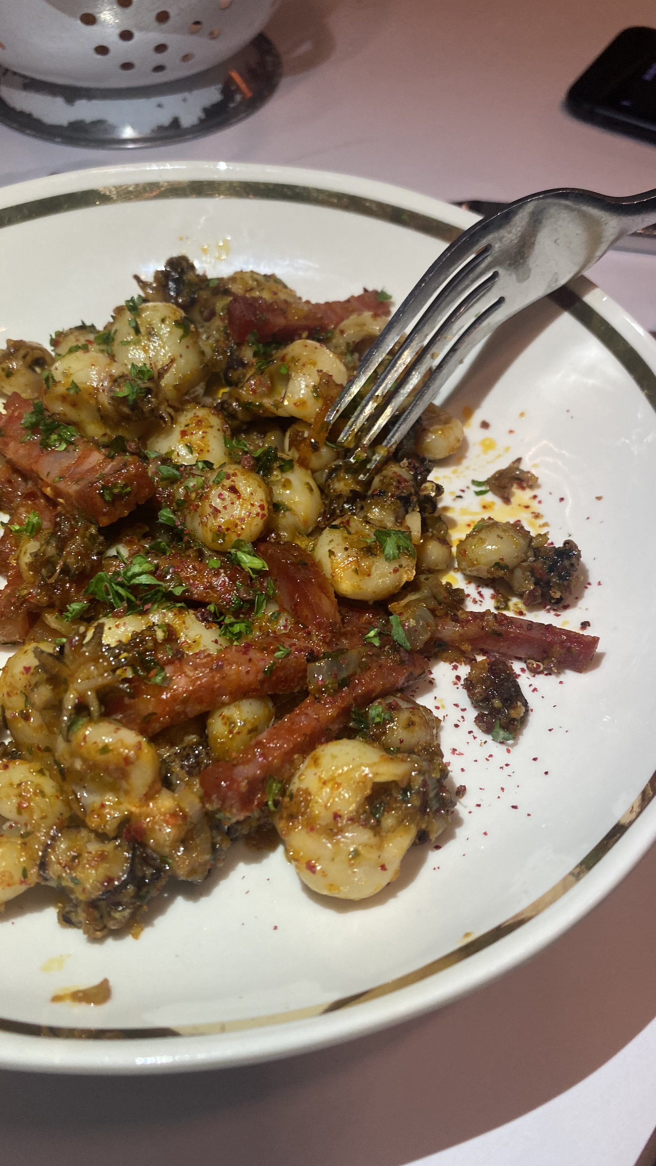 Jamais déçue après avoir dîné au sacré bleu. La carte change en fonction des saisons. On peut facilement manger à plusieurs avec un mixe des entrées à partager ! Le poulpe est excellent (Attention à bien demander si la burrata est encore en stock). Je recommande les couteaux pour ceux qui aiment !