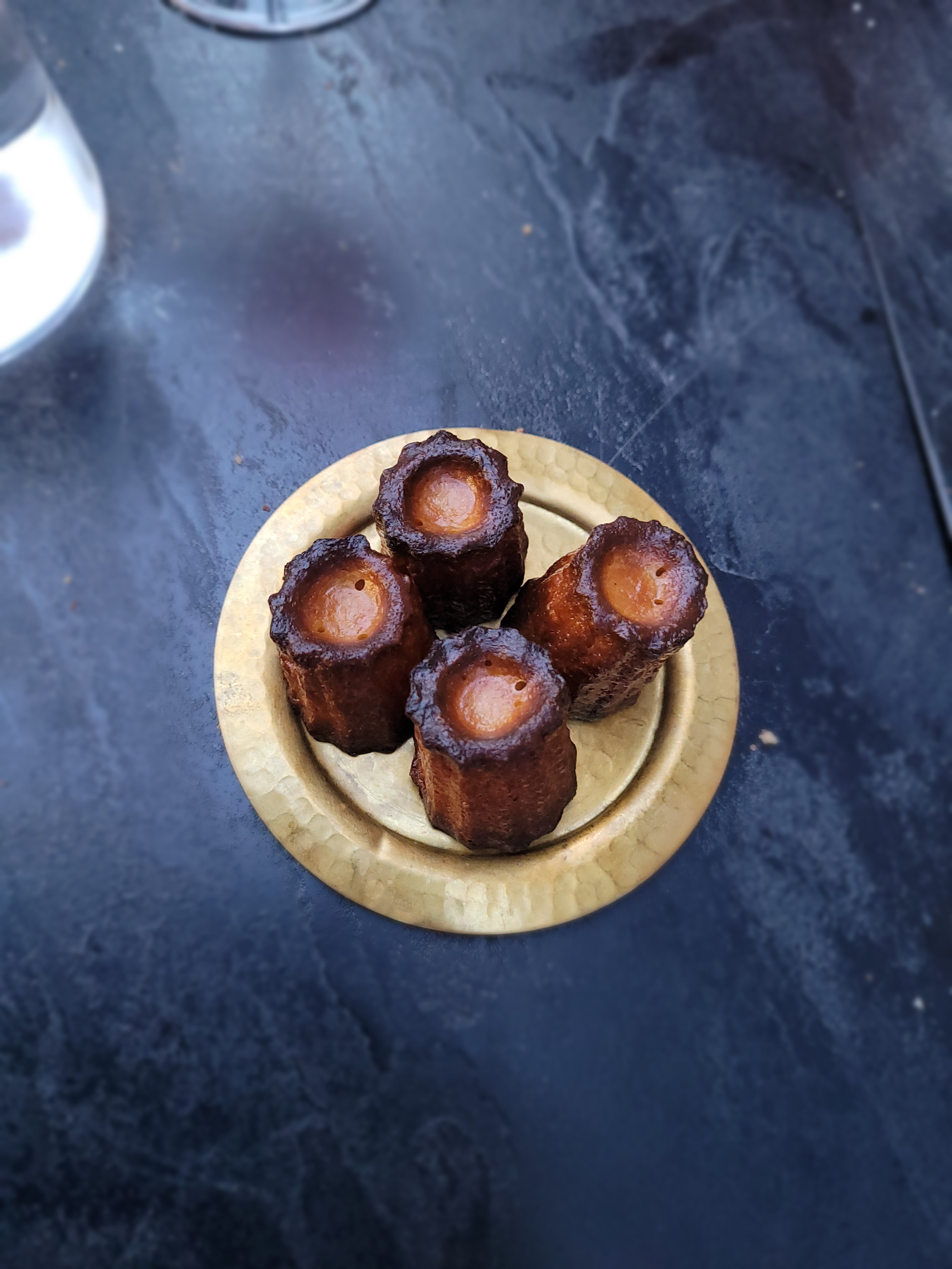 4e visite, toujours au dîner, chez Lise Deveix et ses menus à l’aveugle toujours aussi réjouissants. Mises en bouche, entrées, poisson, viande, dessert sans oublier le fameux cannelé mignardise. Un joli restaurant et une incroyable terrasse au calme donnant sur la jolie rue Saint Blaise, piétonne et végétalisée.