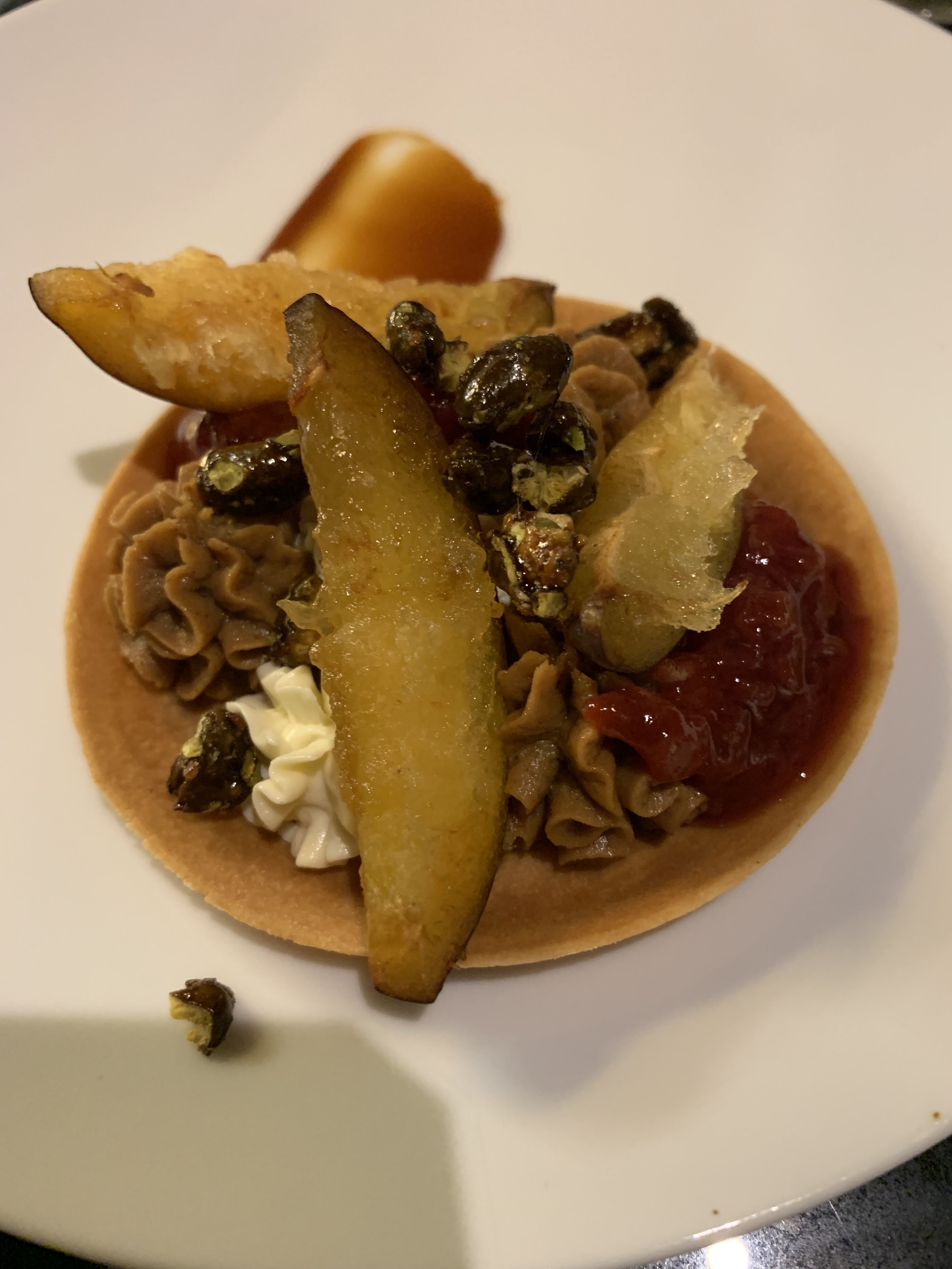 Très bon menu ! Quelques ajustements légers à faire (caramel trop poussé par exemple) mais sinon chaque assiette était originale et délicieuse. Salle un peu exiguë.