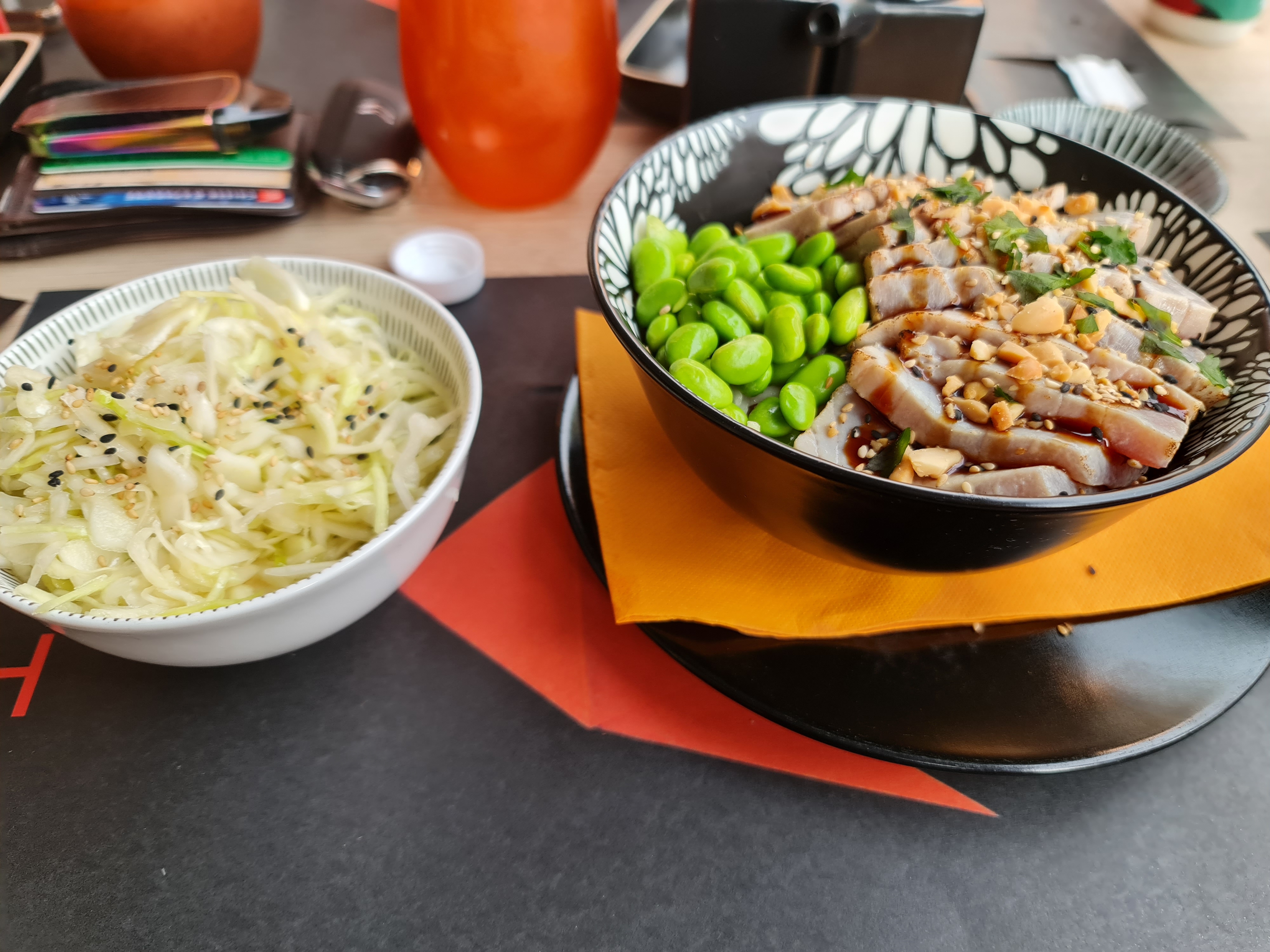 Un restaurant à sushi sympathique. Nous avons passé une bonne soirée. Le chirachi avec les avocats est bon et bien réalisé, les makis sushis sont assez corrects. Le poke Bol est super bien, un mélange de tout! Nous y reviendrons. ________________ Nous y sommes donc revenus 4 mois après et bien nous sommes un peu déçus : le shasimi Luxe n'en a que le nom. Et pour le chirachi cette fois ci c'est bof. Gustativement, c'est moyen d'autant que l'épaisseur des tranches de poisson beaucoup trop fines ne permettent pas une bonne dégustation. Même sur le plat des yakisoba (qui ne sont que des nouilles), on manquait de quantité ...