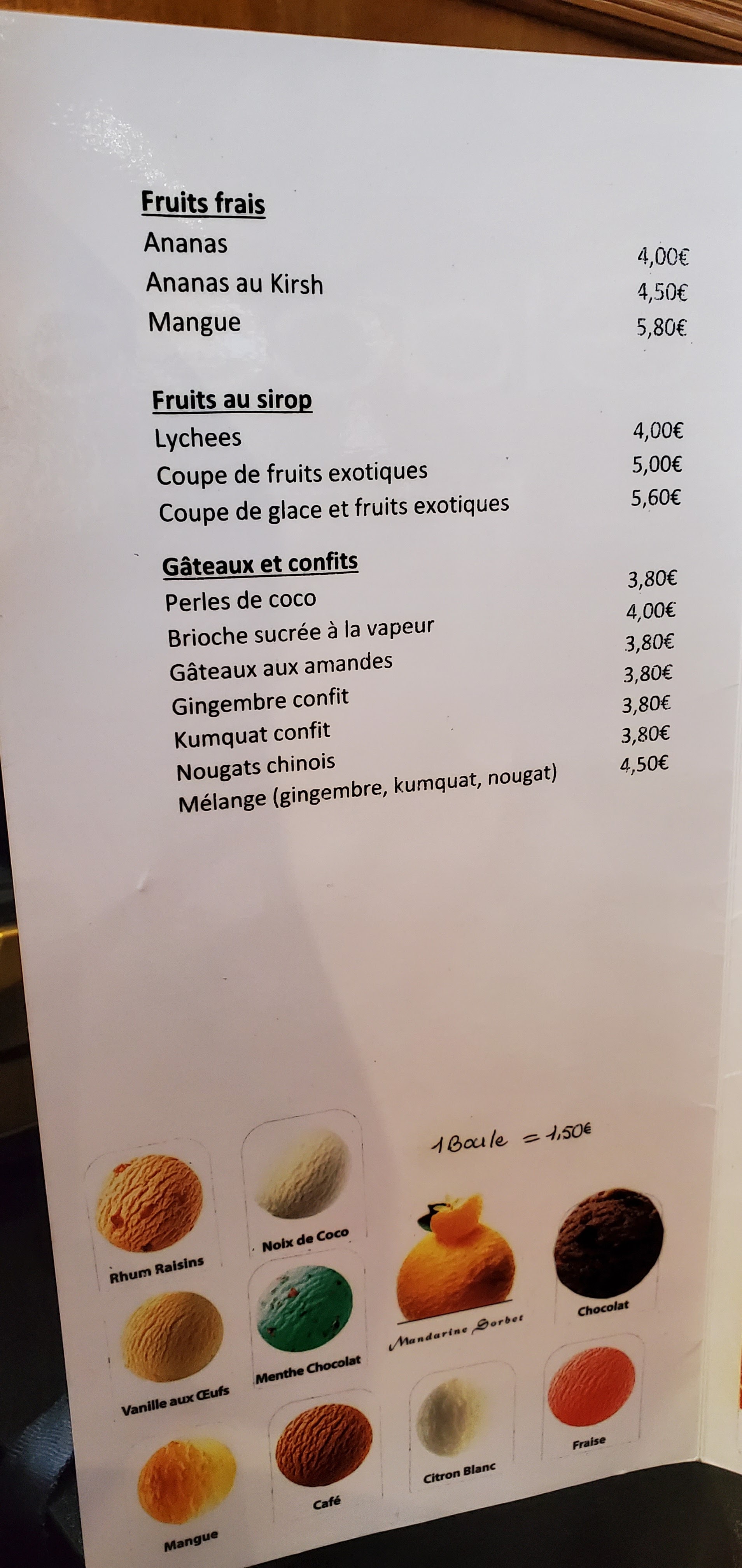 Serveuse très agréable service rapide par contre les portions sont très petites et lorsque la patronne vous demande si ça a été et que vous lui disiez gentillement que les 3 mini morceaux de boeuf dans la salade c est limite mais surtout le riz cantonais servi pour une demi portion elle réponds les clients disent au contraire que c est copieux. J aurai préféré qu on ne me demande pas mon avis si c est pour me dire que j ai tord la réalité c est qu avec plat et dessert je suis sorti j avais faim. Bon ok tout augmente mais les économies de bout de chandelle c est pas une bonne stratégie. Habitué aux resto asiatiques dans le 13eme peut être qu il faut habiter en banlieue pour apprécier de payer 25 % plus cher des plats demi portion.