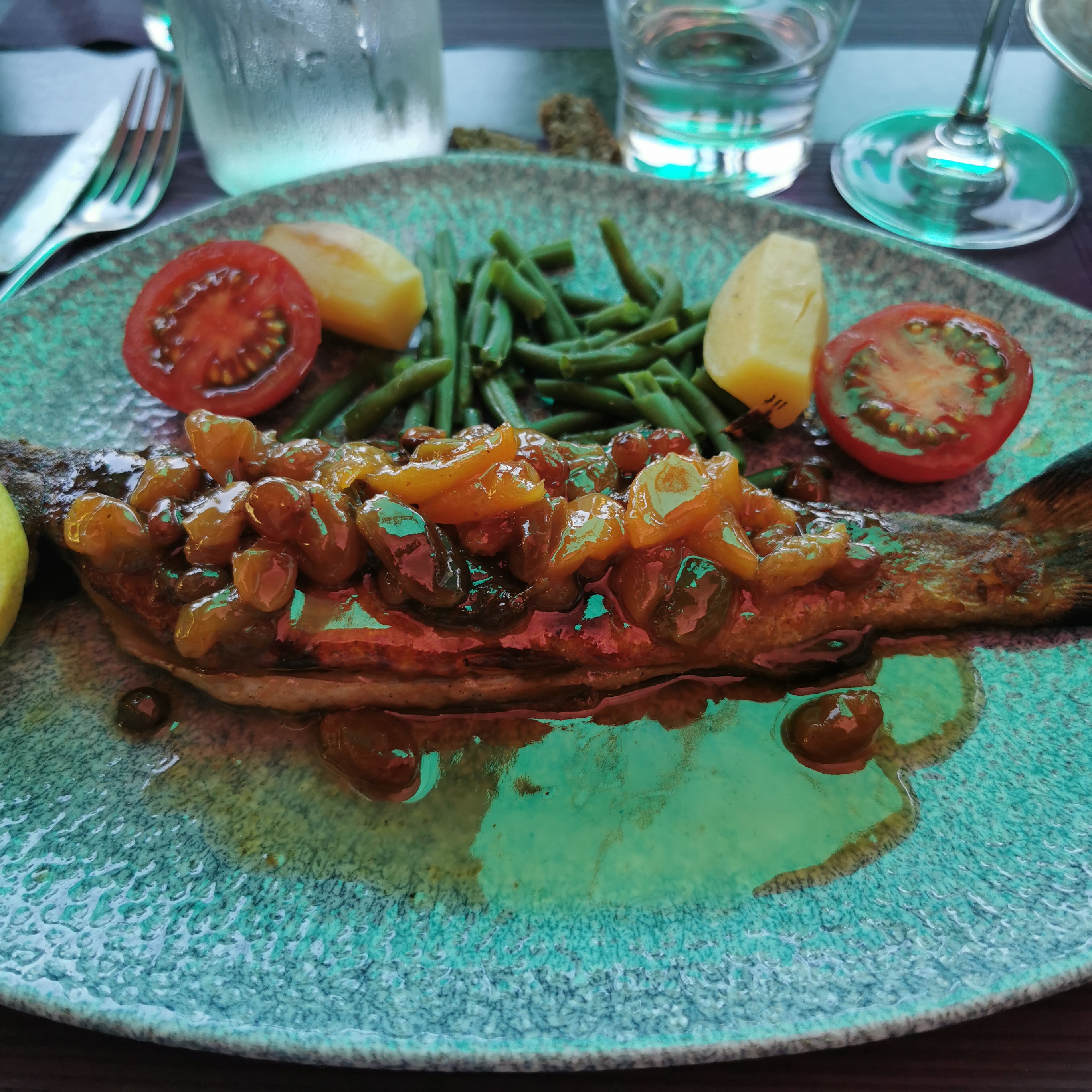 Les truites étaient cuisinées à la perfection et très bien servies ! Les desserts à tomber ! Le service était également au top 🙂