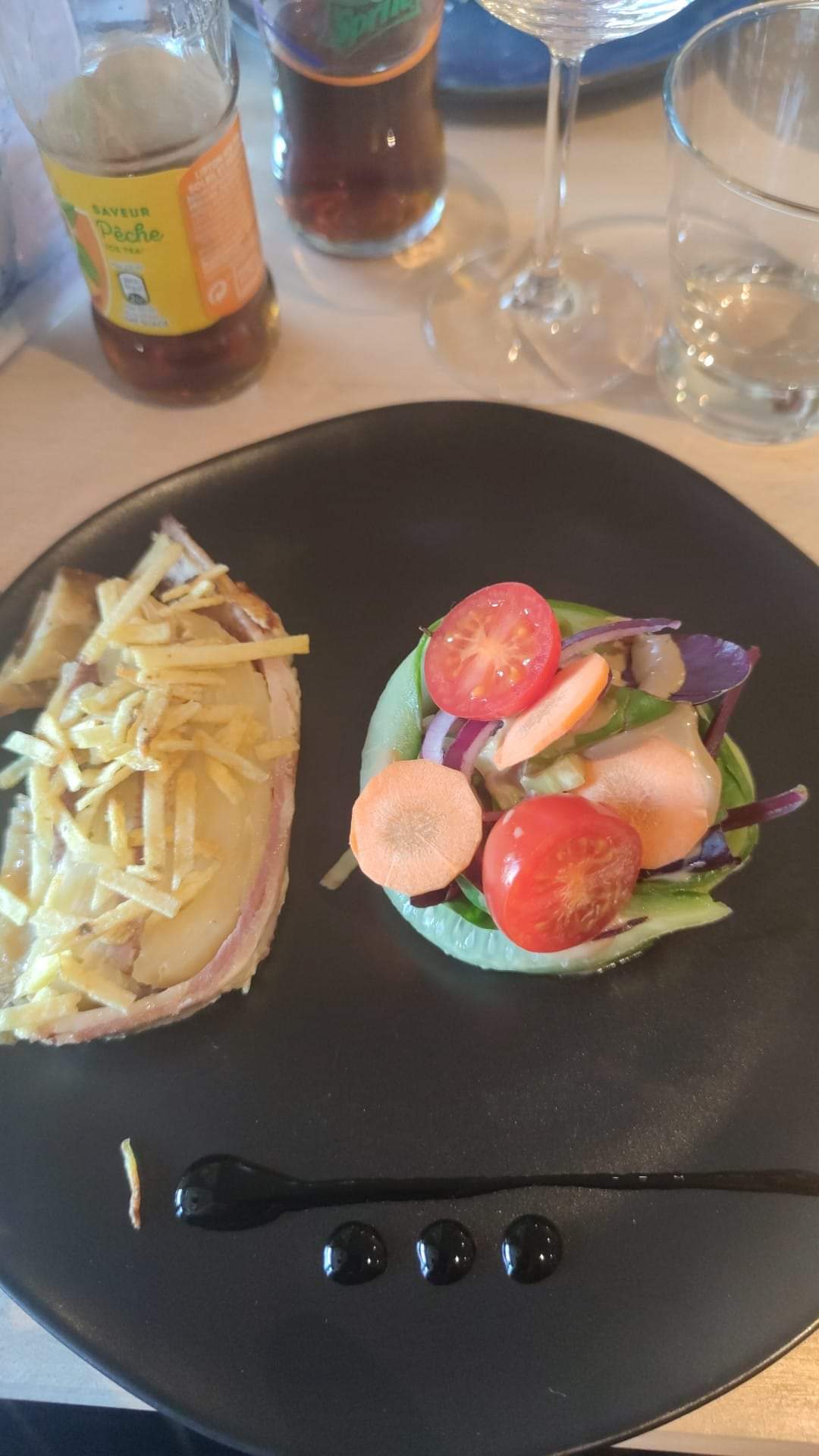Nous étions de passage et avions envie de notre premier resto en terrasse depuis le début du confinement et alors quelle surprise sur ce pavé de bœuf préparé aux petits oignons, c est une adresse à retenir, le cuisto me reconnaîtra avec l histoire de la vieille quand nous sommes partis 🤣👍