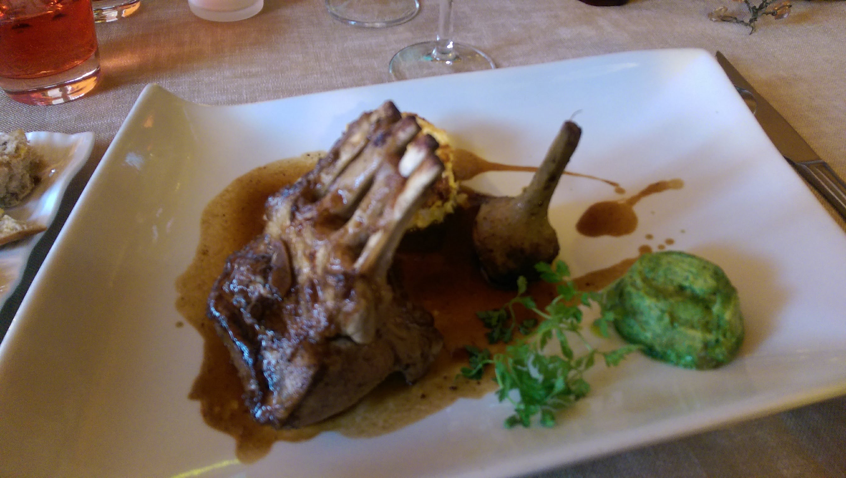 Mon repas le plus décevant de ce voyage en France. La langoustine était trop épicée et impossible à distinguer des autres poissons. Le surf et le gazon étaient également décevants : l'agneau était trop rare, les pétoncles détrempés, tout comme les légumes. Quand j'ai demandé s'il serait possible d'avoir un accompagnement de pommes de terre ou de frites, la réponse a été non. J'ai décidé de retourner au restaurant où j'étais la nuit précédente et d'y commander un repas plus satisfaisant pour célébrer ma dernière nuit en France.