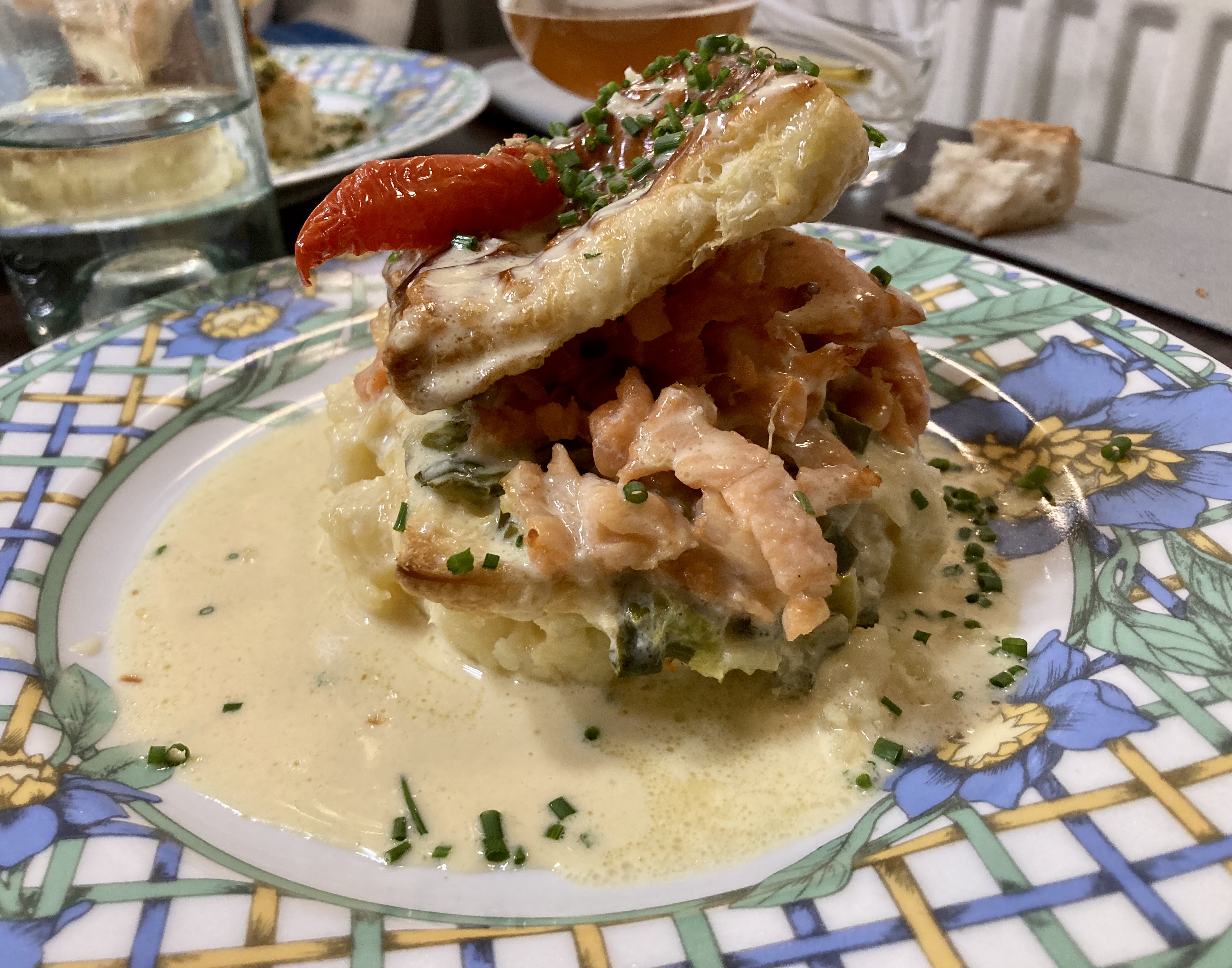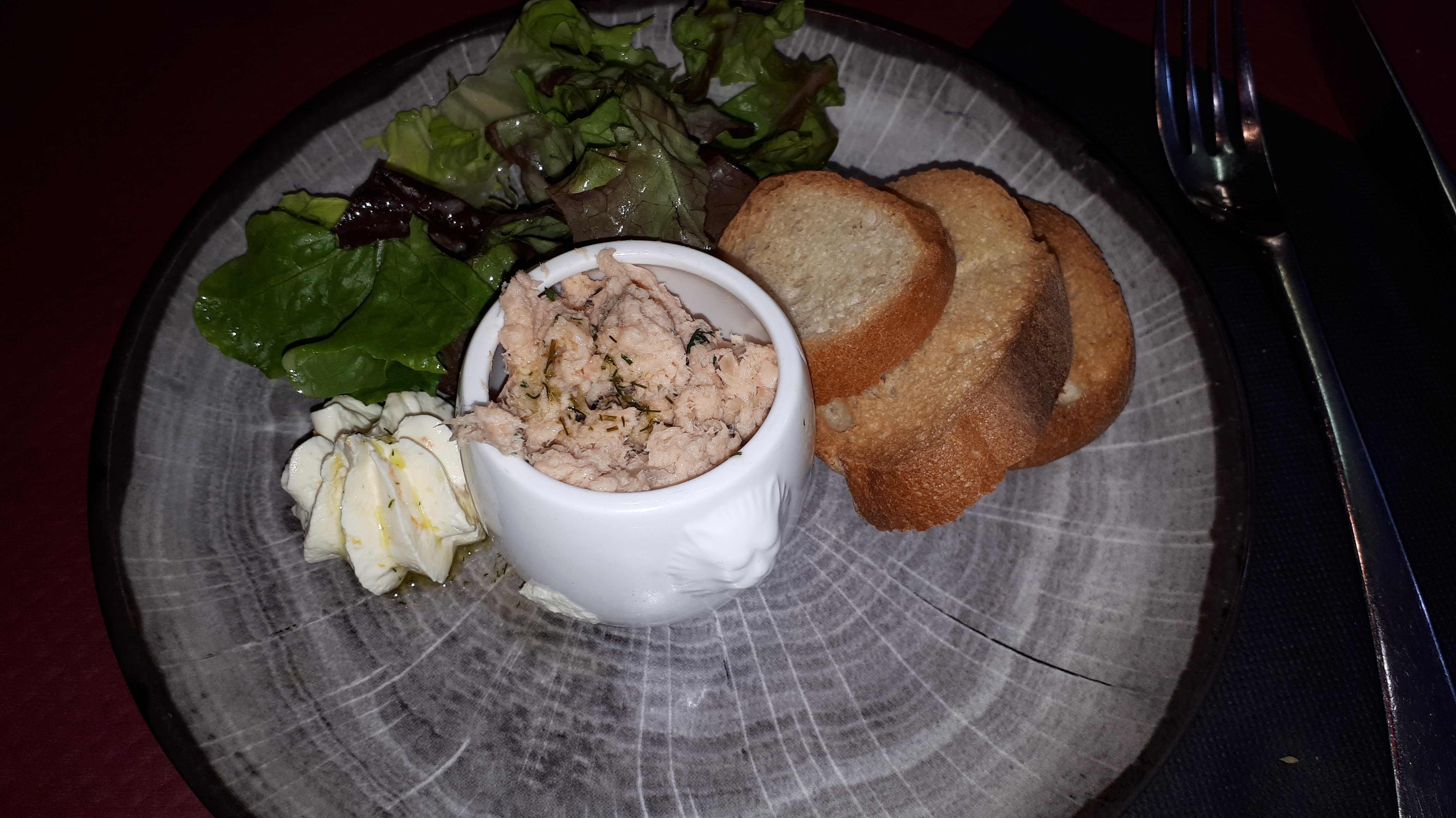 Proportions à revoir, croustillade de saumon avec de la pâte feuilletée vide, aucun intérêt, saumon peu présent, filet mignon de port qui s’étouffe sous la tonne de frites surgelées, le service laisse à désirer de la part de la serveuse, on se demande même si on dérange.