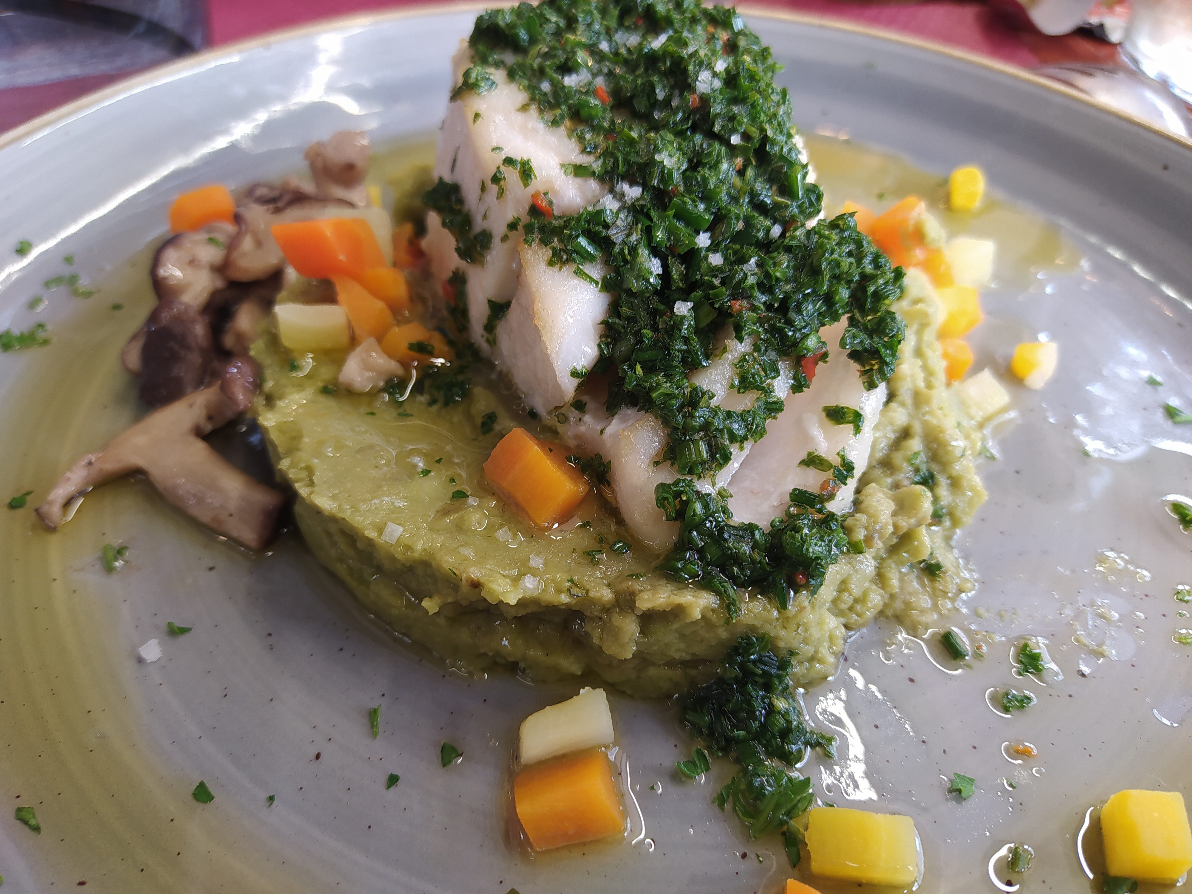 Le menu à 26€ était très bien, nous avons mangé une soupe de poissons, aile de raie et far aux pommes. Le service était un peu long pour avoir la 5eme etoile 😉