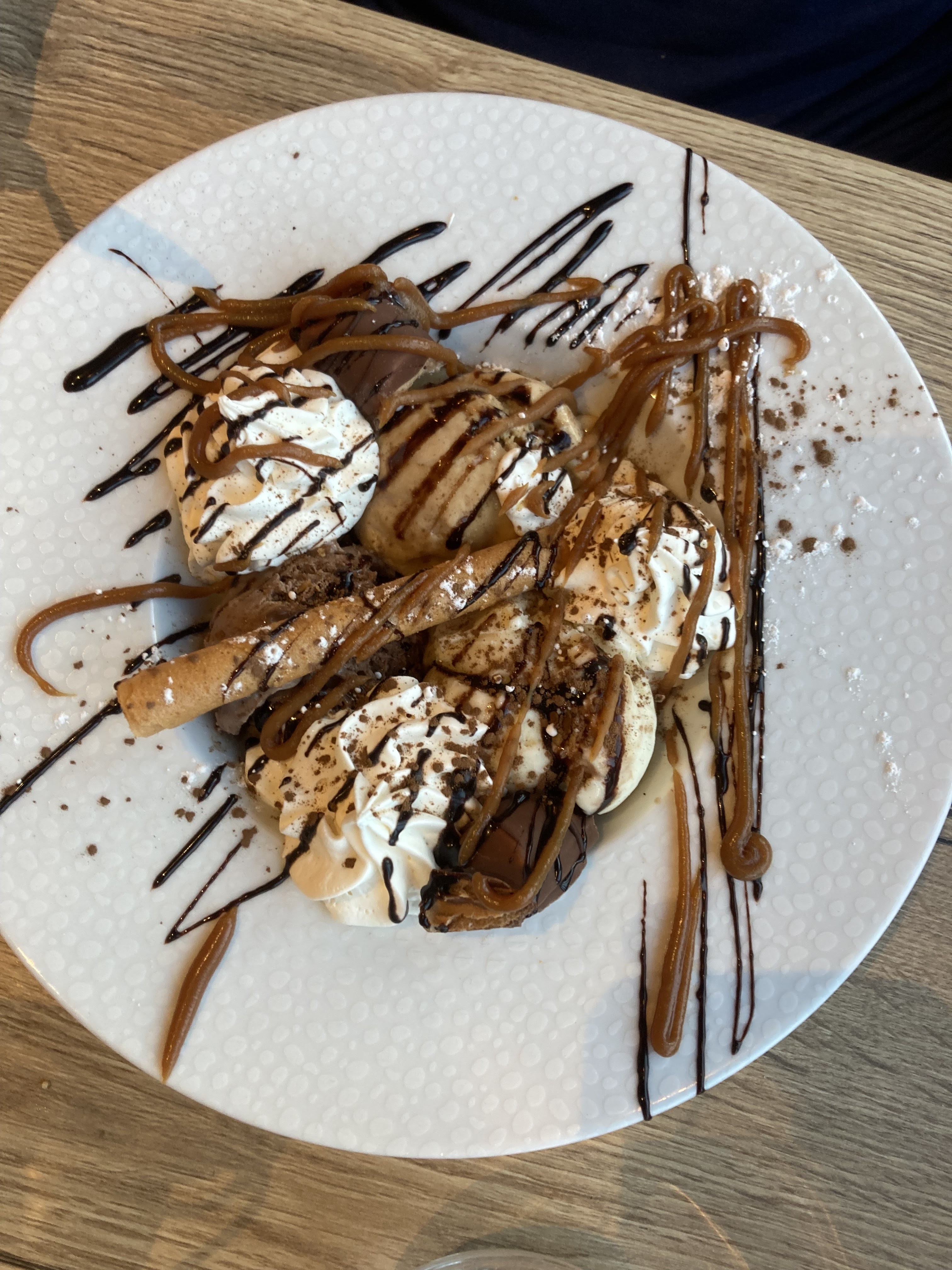 J’ai eu le malheur de demander gentiment si le dessert contenait du café, y étant allergique ++,assiette gourmande, j’ai reçu les foudres du patron ! Mais quel idée d’avoir choisi la restauration lorsque l’on est si peu aimable ?! Nous étions une tablée de 15 adultes et une autre de 6 enfants . Un peu de respect pour les clients serait appréciable. Pour le reste rien à dire la serveuse très gentille et professionnelle. Par contre je n’y remettrai plus jamais les pieds car ce n’est pas la première fois que le patron petit chef imbu de lui même nous répond très mal . 👿