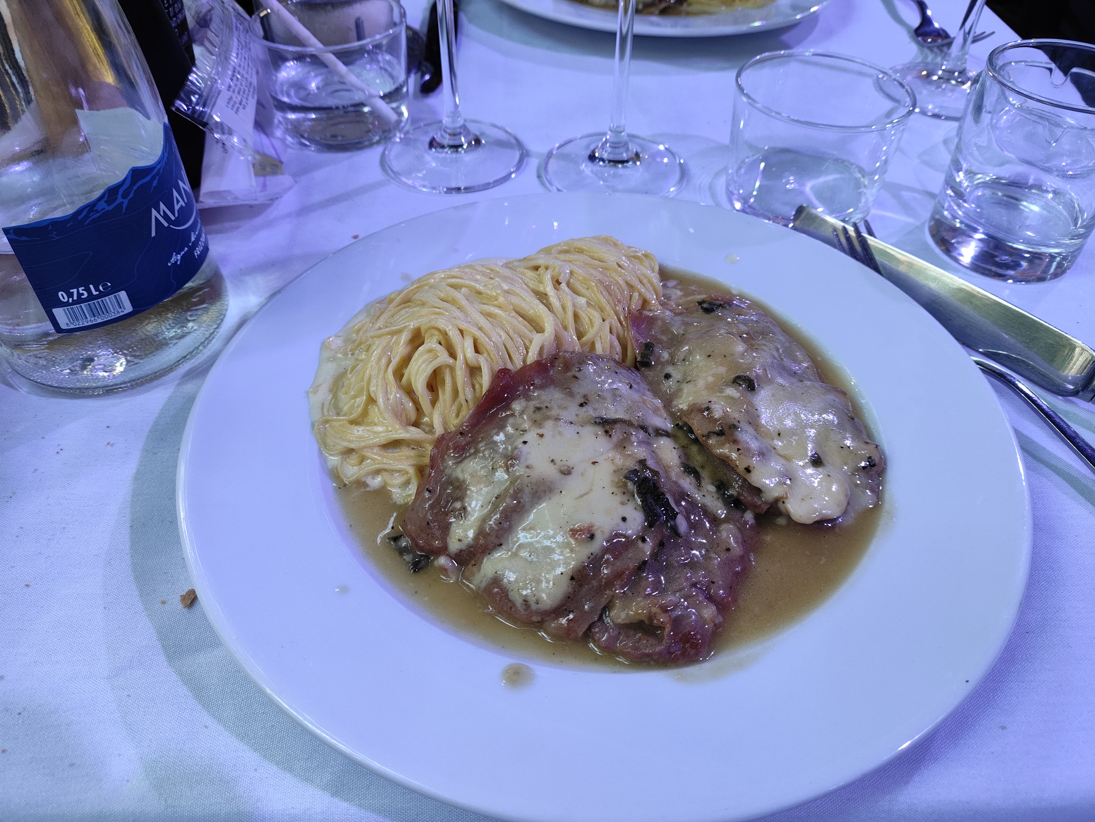 Plutôt bon mais inexplicablement cher ! Plat de pâtes avec gambas... 3 gambas pour 30 euros...