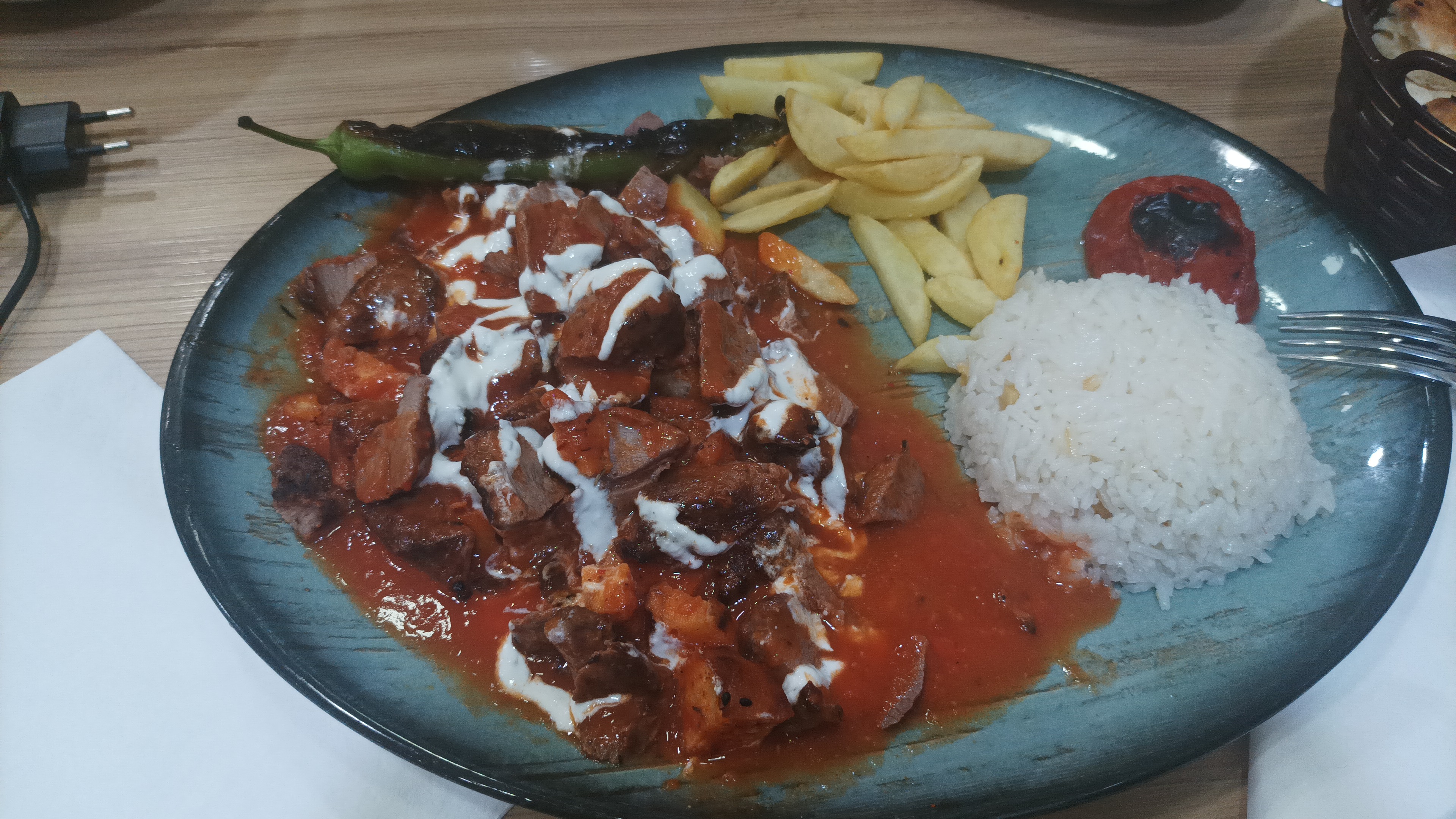 L'endroit était froid pas chauffé, en ce qui concerne la nourriture le riz était croquant la viande brûlée, nous avions également pris un sac kavurma où les oignons et poivrons étaient encore cru. Bref je déconseille