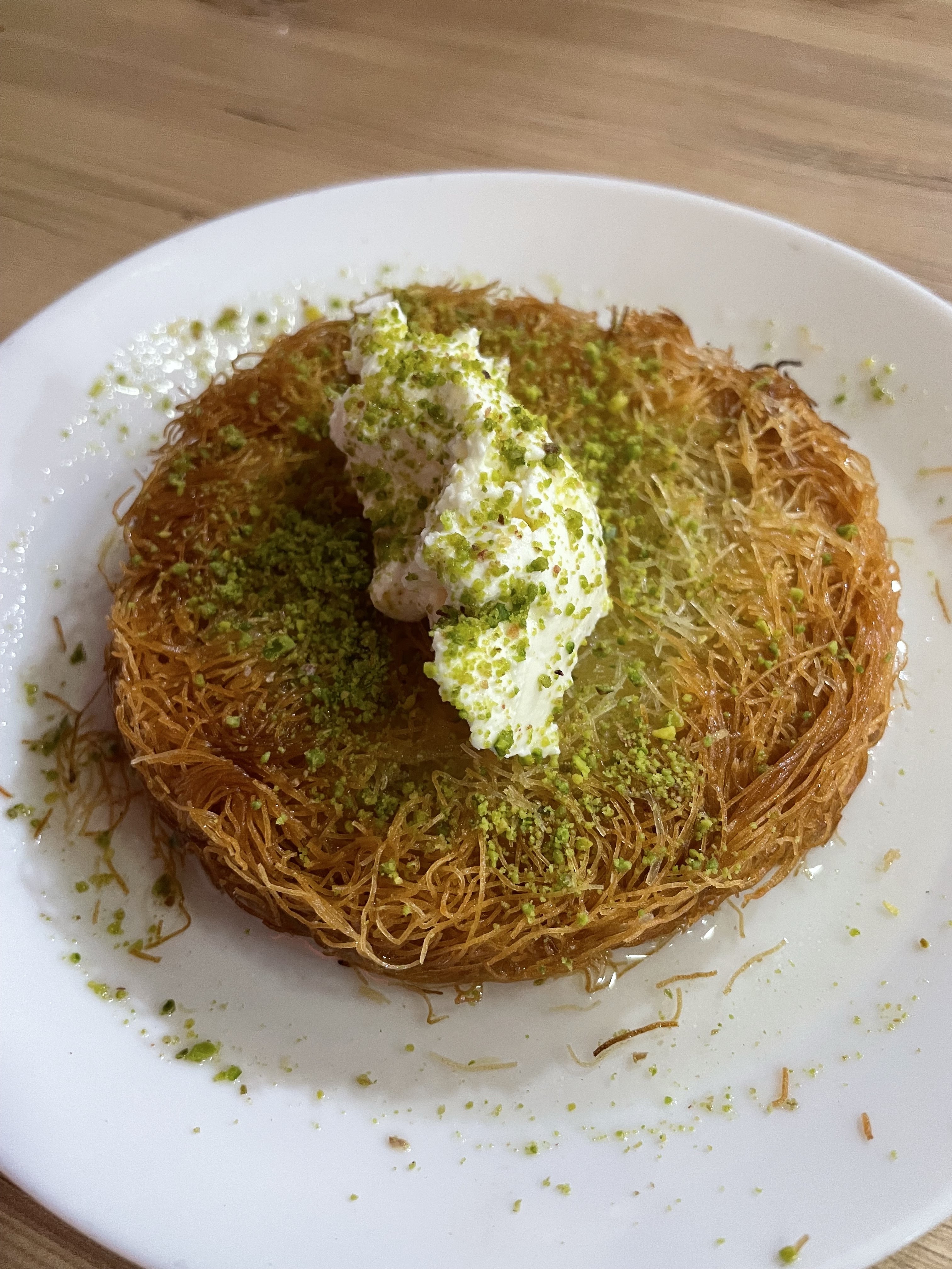 Je suis extrêmement déçue ! j’ai pris deux kunefe à emporter après en avoir rêvé pendant plusieurs jours.. au final elles m’avaient aucun goût. De plus ce n’est pas cuit au centre et elles sont très sèches. C’est dommage pour un restaurant aussi bien noté, je m’attendais à un bon dessert.
