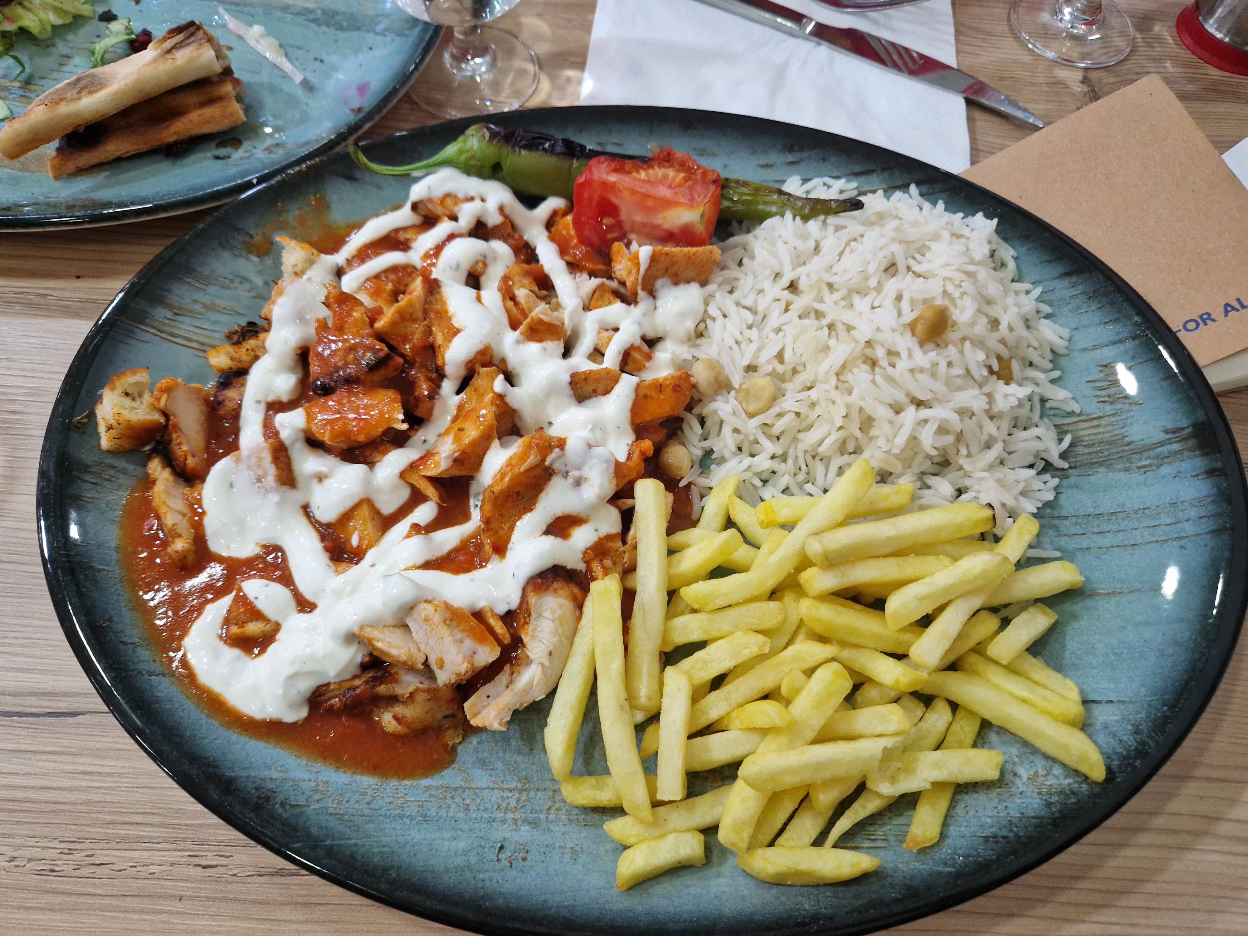 Très déçu par les assiettes à emporter, qui ne correspondent pas au descriptif du menu. Beaucoup de riz et de frites (riz dur). Je peux comprendre que la période est difficile mais il faut faire un effort lorsqu’on fait payer Quasiment 20 € l’assiette. surtout que les prix à emporter sont identique que sur place. Peut être que sur place c’est meilleur, mais à emporter je ne recommande pas du tout. Je préfère commander des assiettes au kebab.