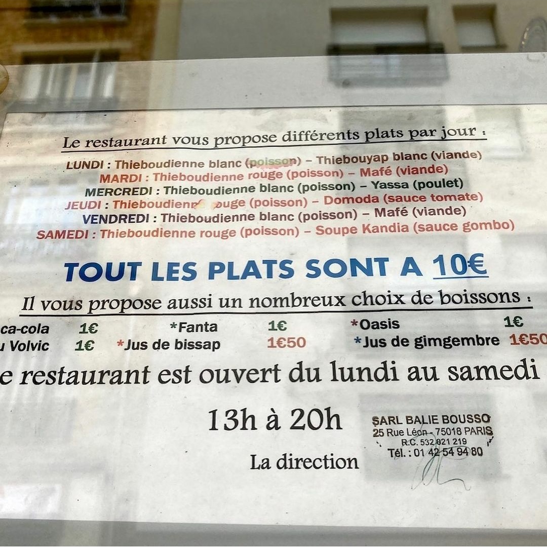 Excellent thieb, on a goûté du thieb bou yapp et le thieb bou dieun, c'est une cuisine authentique et c'est excellent . Bref si vous voulez goûter un vrai thieb, passez par chateau rouge poussez la porte de cette toute petite échoppe et commandez, le rapport qualité prix est imbattable, (makes you want to live in Paris ;)