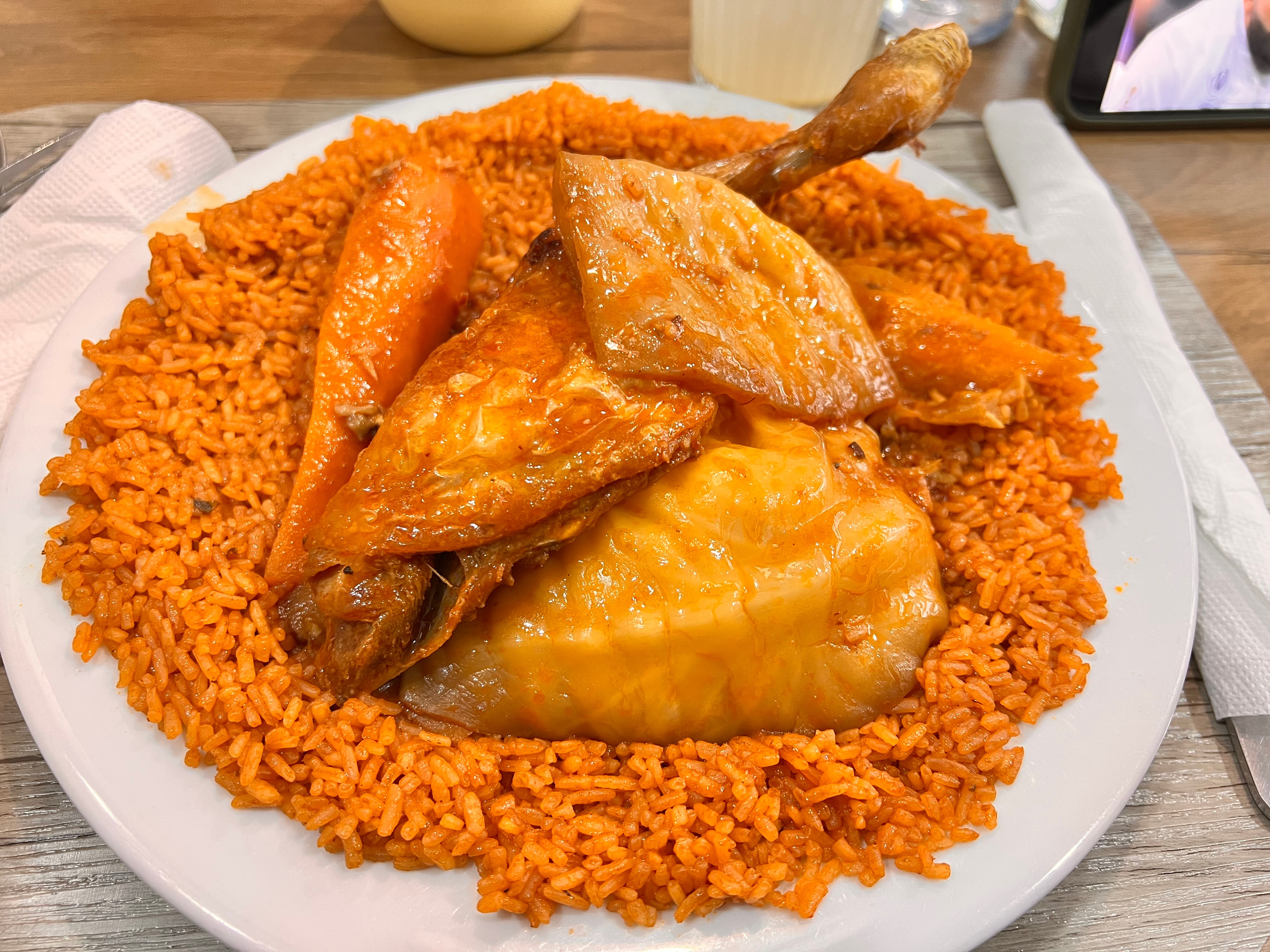 J’ai commandé un thiéboudiène rouge au poulet à emporter. La sauce piquante accompagnée gratuitement, bien volumineux ! Mais un petit peu cher au prix général d’un thiéb. Globalement content du goût et de la quantité, je reviendrai prochainement sur un autre jour comme ils ont uniquement le plat de jour ! Petite note : l’escalier aux toilettes bizarrement super raide…!