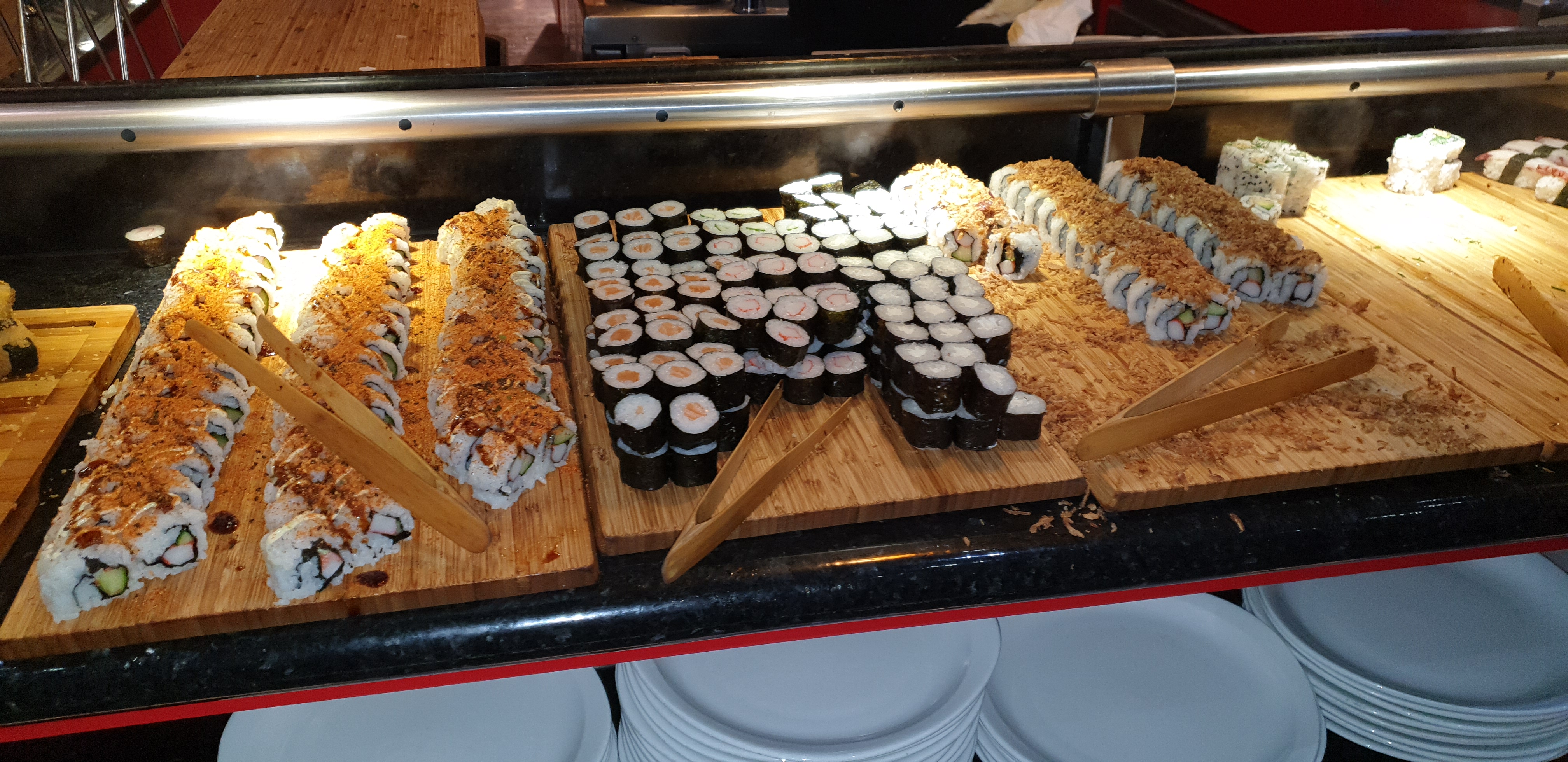 Un choix de desserts, de sushis, makis impressionnant,comparé à d'autres restos à volontés. Cependant j'ai trouvé l'endroit extrêmement bruyant, avec des enfants qui jouaient entre les tables. Personnels très sympas.