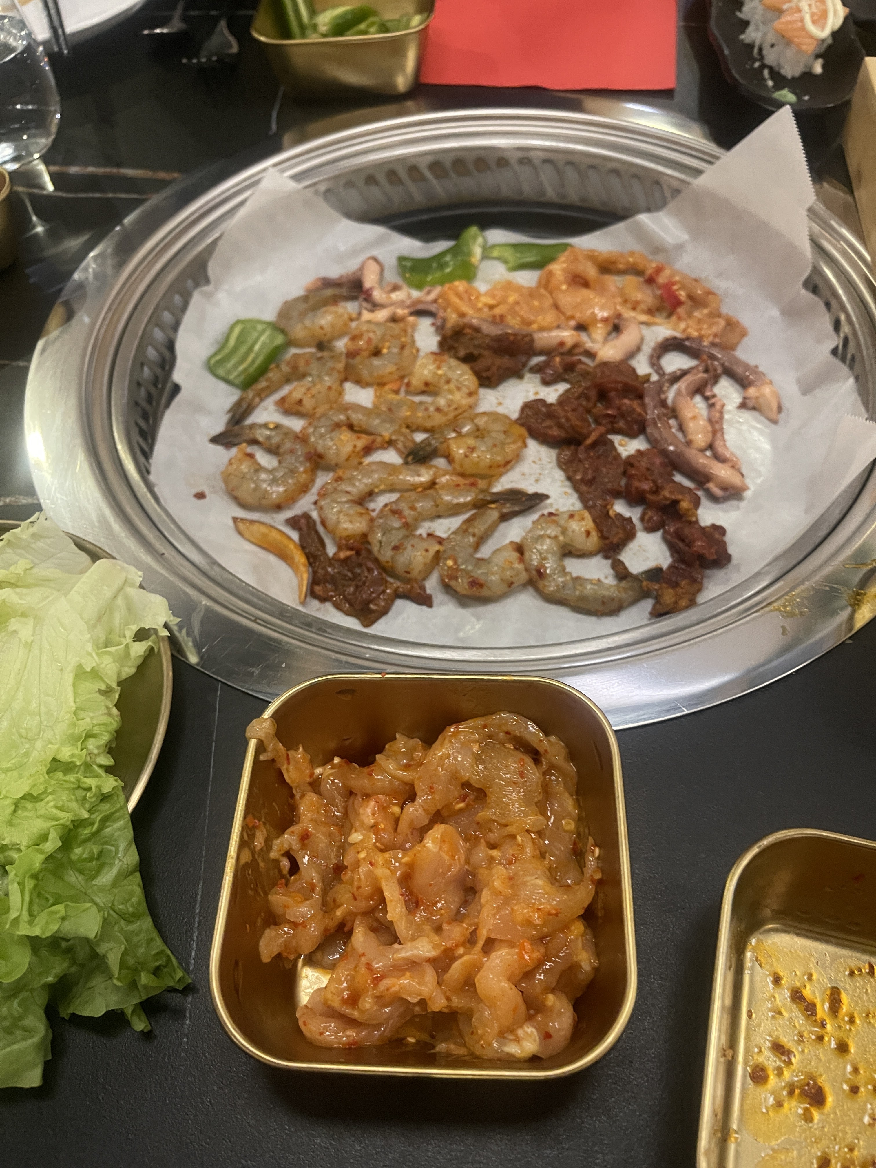 Un nouveau restaurant sympathique et de qualité ( pour un volonté) gros + pour les sushi dans un coréen c'est un gros +.. 18 sortes de viandez/poisson à faire griller sur la table ! Le prix reste un peu chère pour un samedi soir mais je recommande ! La mousse au chocolat une tuerie ! Un peu + de dessert serrait quand-même bien. Les serveurs sont sympathique et le service rapide en moyenne. Prévoir de l'attente si vous venez après 20h30. Je recommande fortement !