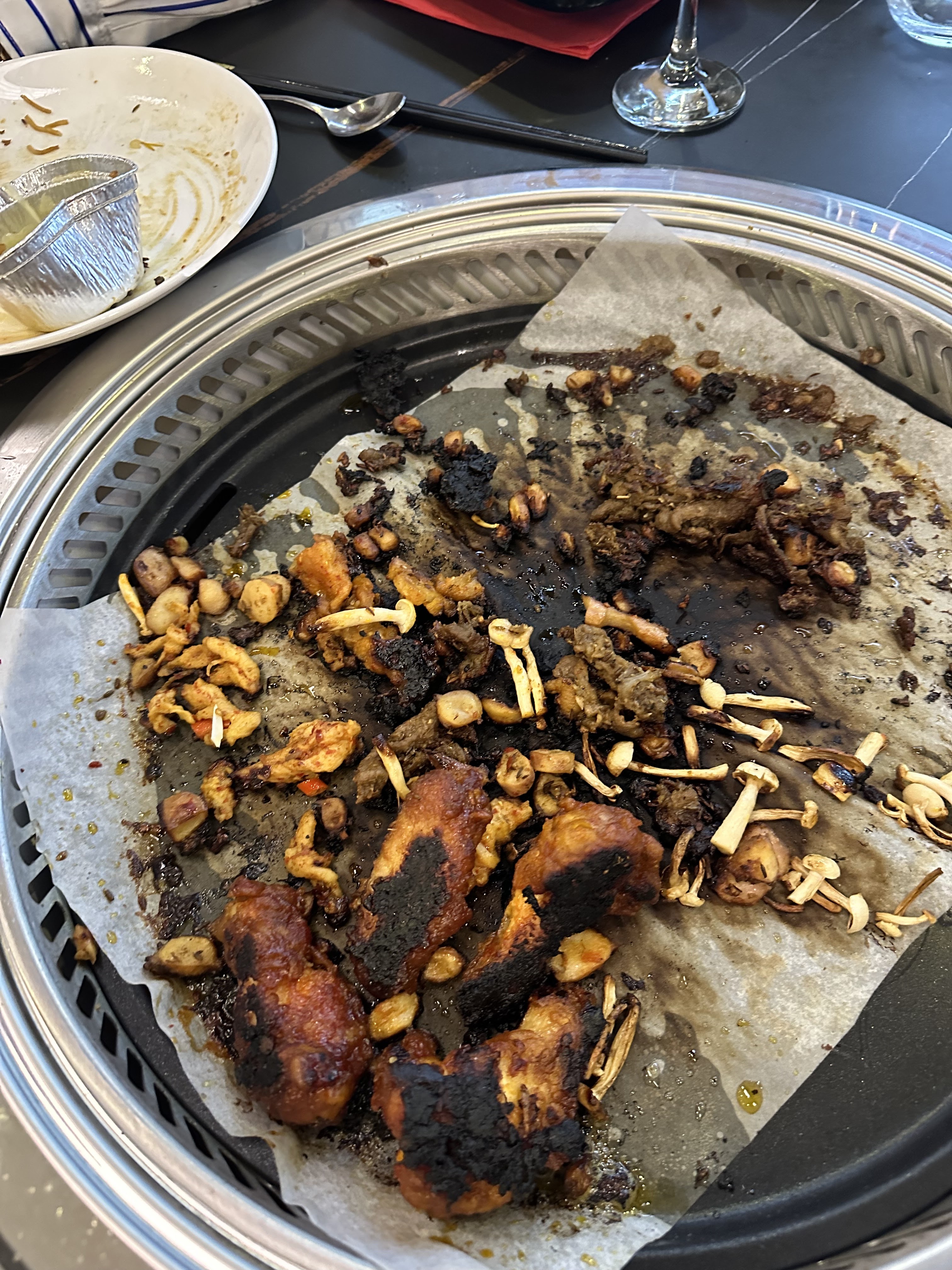 Bon moment dans ce restaurant de grillades asiatiques. Chacun choisit ses ingrédients (viande, crevettes, poisson, légumes...) et utilise le barbecue au centre de chaque table. Possibilité de commander les accompagnements mais aussi des entrées comme des gyozas et des sushis. Desserts classiques et corrects. Originalité, les plateaux sont apportés aux tables par des robots. Mais le service est aussi bien présent en personne.