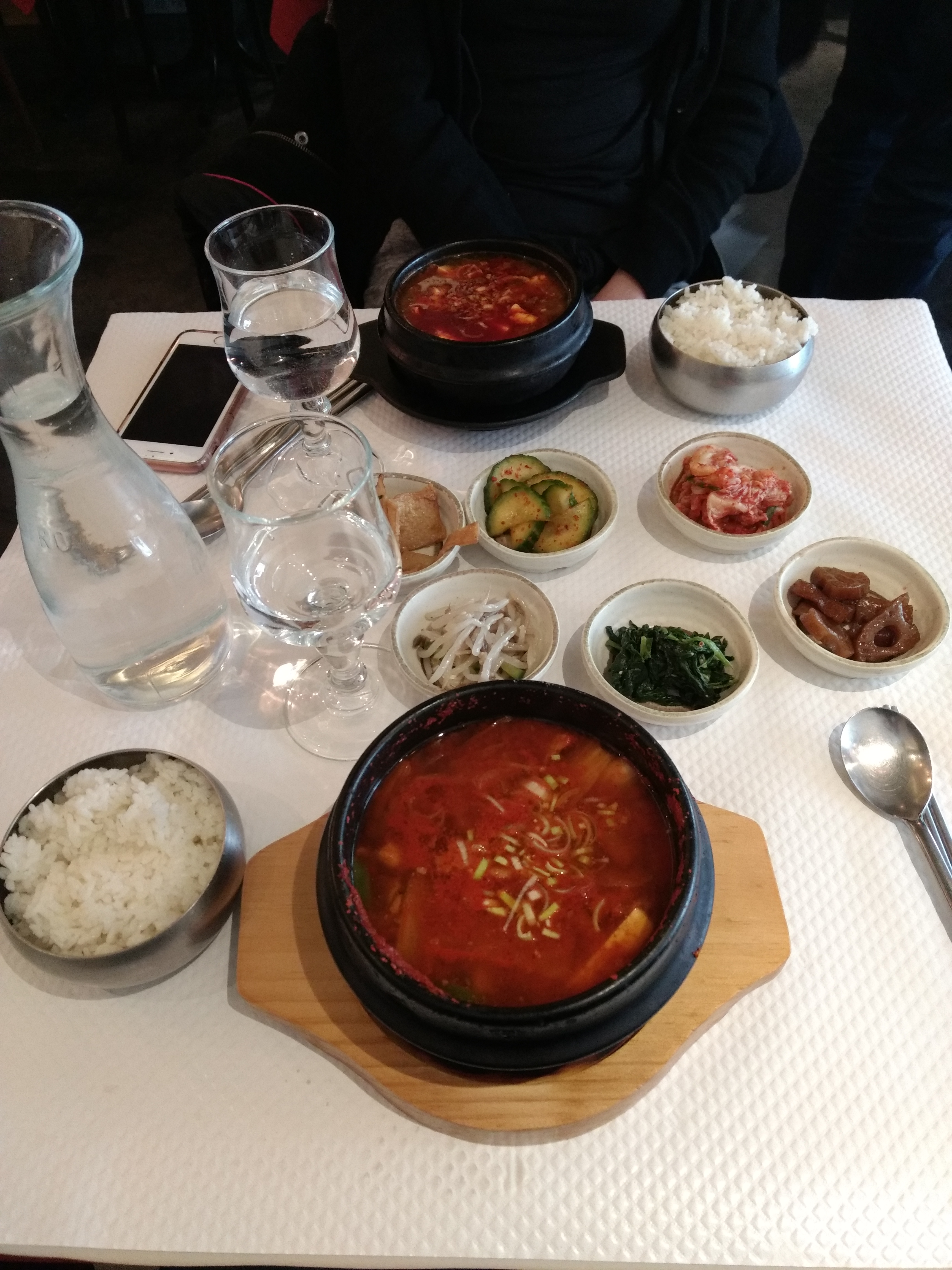 C'est un bon resto coréen, pas le meilleur, mais qui fait le job. Petite erreur sur le kimchi jjigae, mon amie est végé elle avait demandé sans viande, le serveur avait bien noté sur son calepin mais ils lui ont apportés la version normale avec du porc malgré tout. Heureusement qu'elle a mélangé son bol avant. On a renvoyé le plat, qu'ils ont changés, ouf.