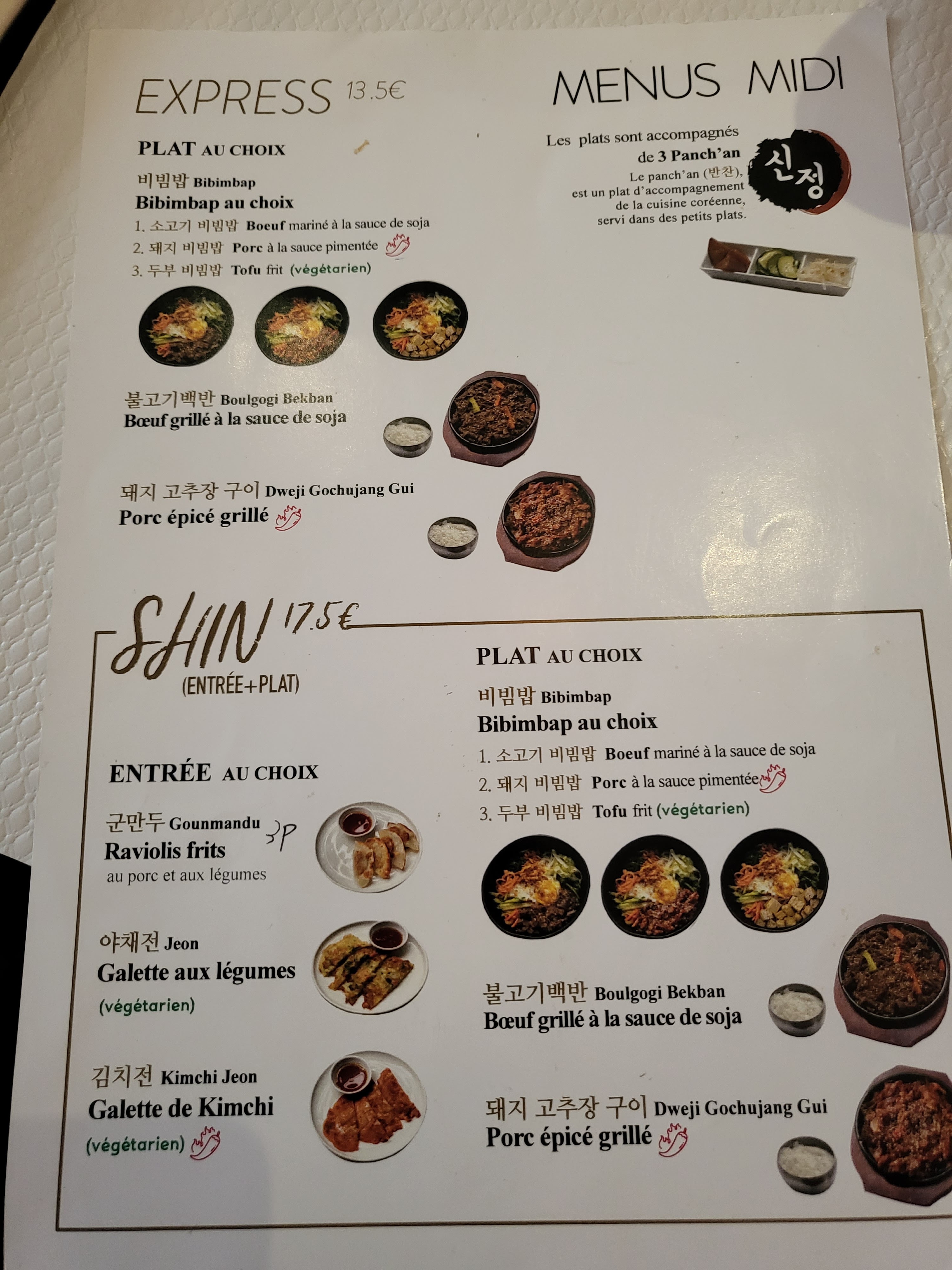 On a essayé le bibimbap au porc et le bulgogi. Les plats et les entrées étaient vraiment super. Les prix sont ok.