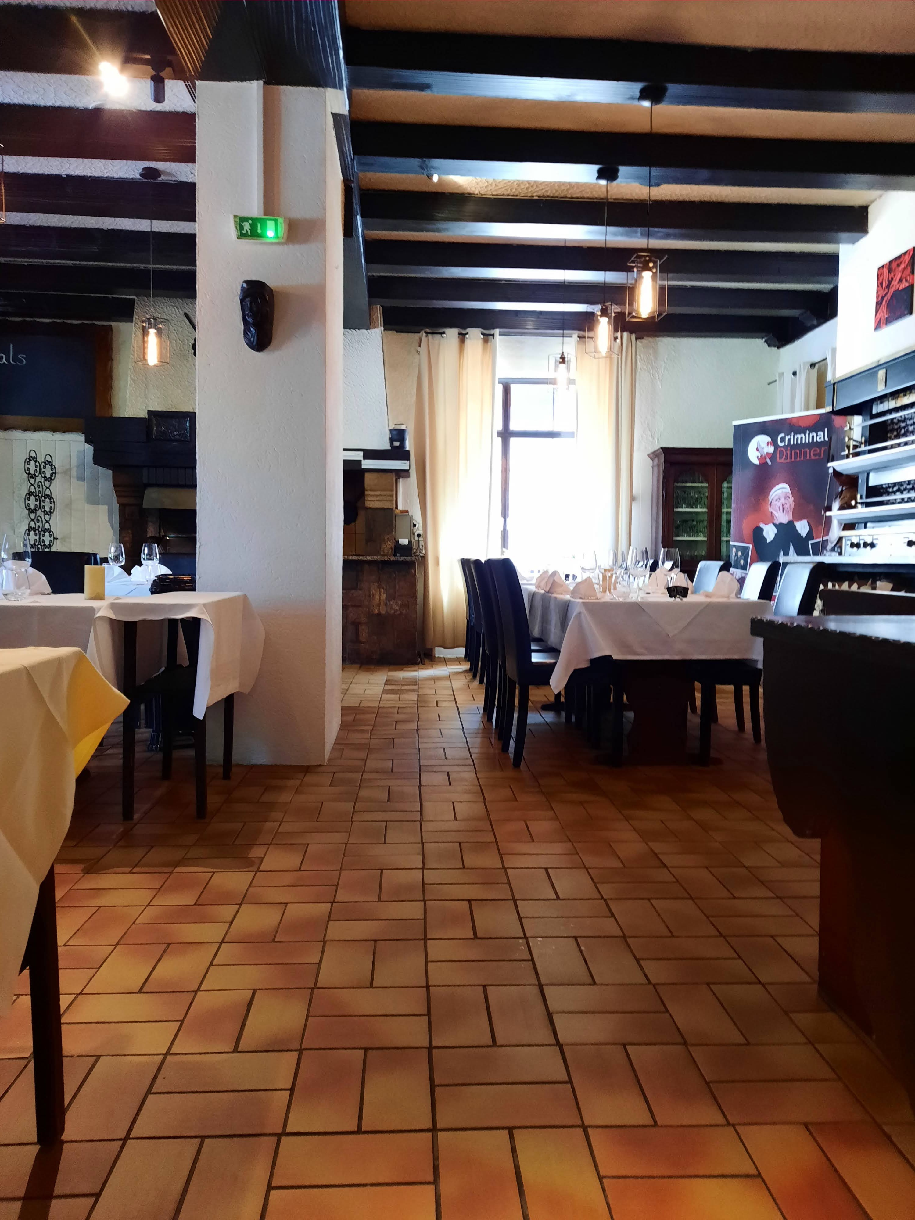 Nous avons organisé un dîner criminel ici le week-end... Ce qui était extrêmement ennuyeux, c'est qu'il faisait très froid dans la pièce, donc désolé, si je dois dépenser autant d'argent pour quelque chose comme ça, je m'attends au moins à ce que la température intérieure soit d'au moins 19°, crise énergétique ou pas. ! Je devais garder ma veste d'hiver presque tout le temps, mais comme j'étais assis immobile, il faisait encore froid à un moment donné. La nourriture était correcte jusqu'à présent. Malheureusement, la serveuse était complètement débordée, lorsqu'elle demandait plus de boissons, elle devenait agitée et hostile, elle devait d'abord apporter la nourriture de tout le monde, puis elle n'aurait pas de temps pour nous avant cela parce que sa serveuse l'avait laissée tomber et elle ne va pas partout en même temps pourrait être🫡 Un simple je serai là de manière amicale l'aurait fait aussi. Le 2 ⭐️ est pour la nourriture qui était délicieuse et 1⭐️ est pour l'emplacement. Il y avait une déduction pour le service et pour la chambre beaucoup trop froide !