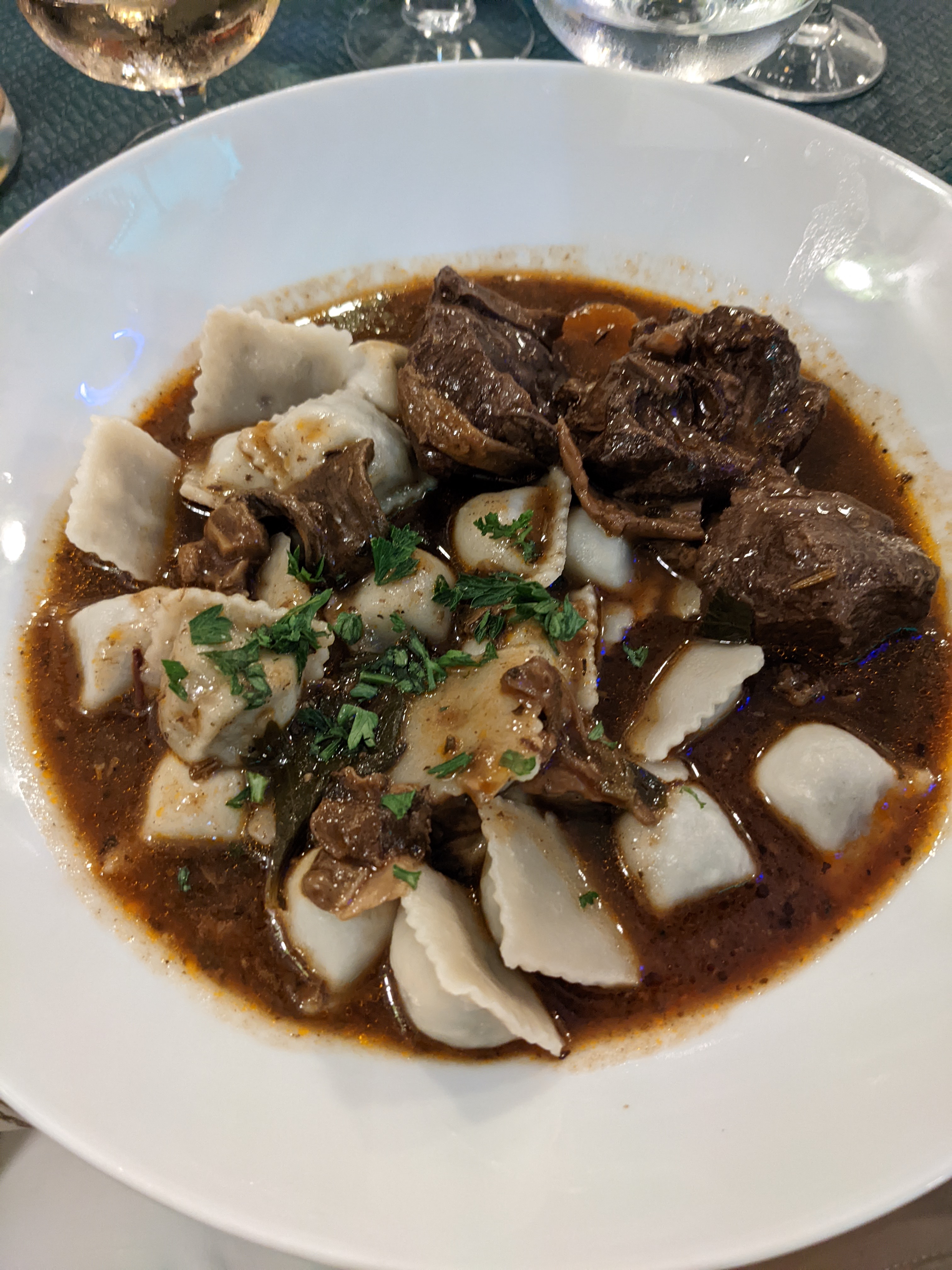 Raviolis sauce daube très bons ainsi que la salade aux chèvres chauds. Allez-y !