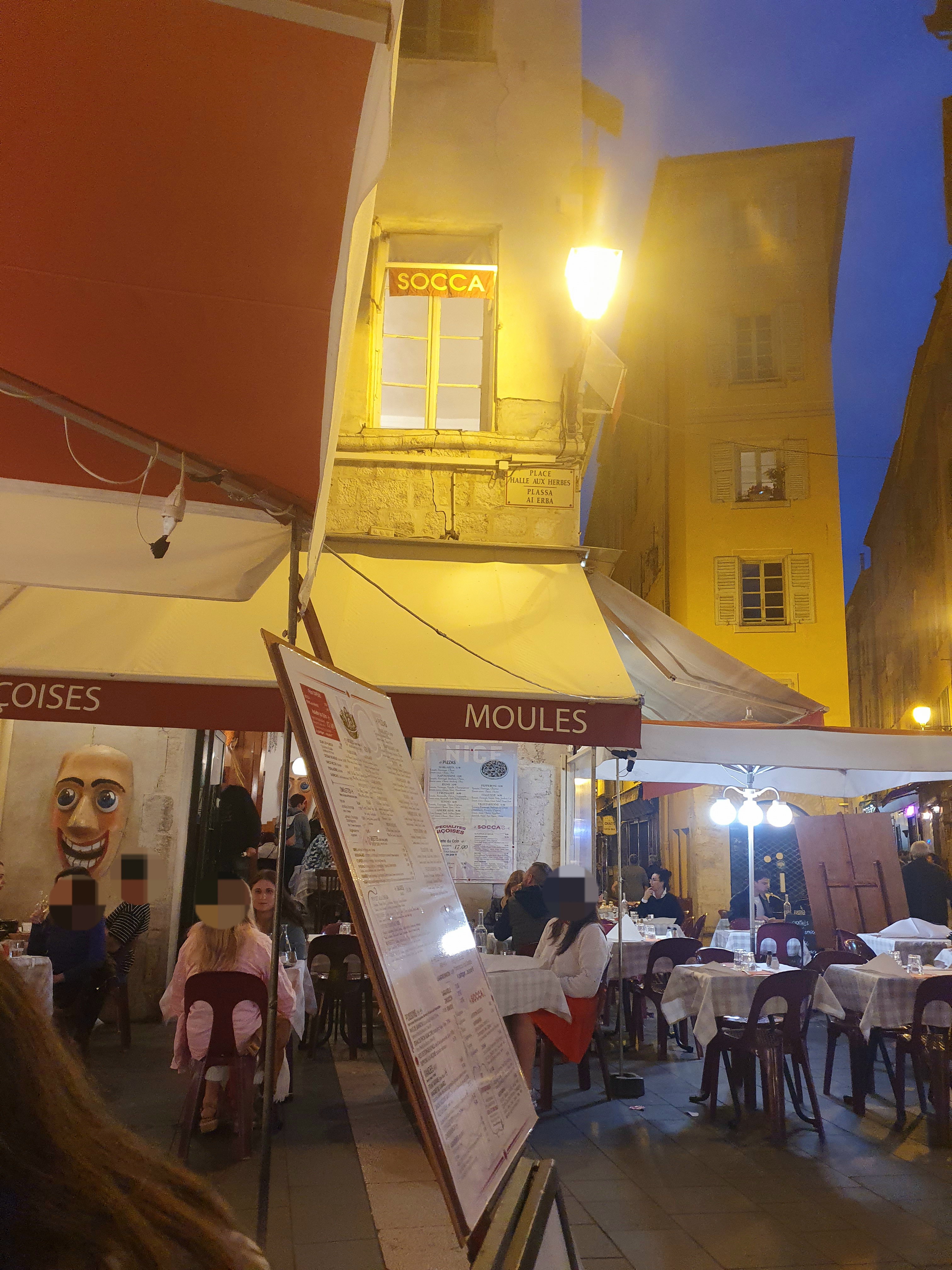 Évidemment, en raison de son emplacement, il est toujours plein et il n'y a donc aucune raison majeure d'offrir de la bonne nourriture ou des boissons. En allant à cet endroit, tout ce à quoi vous pouvez vous attendre est raisonnable, mais ce n'est même pas ça. Socca sèche, sans goût, salade ok. Mais le café - incroyable - c'est la France, le café au minimum devrait être correct, mais ici j'ai probablement eu le pire expresso de ma vie. Le personnel était correct, sympathique - donnerait au service 4 à 5 étoiles, mais quelque chose d'inacceptable s'est produit à la fin du déjeuner. J'ai mangé, du vin, des cocktails, du café et je suis allé aux toilettes. À mon retour, ma table était déjà préparée pour les nouveaux clients. Personne n'a pris la peine de me demander si je voulais autre chose et n'a pas non plus attendu que je paie. J'ai exprimé que c'était vraiment irrespectueux et la serveuse a expliqué que leur patron leur avait demandé de faire cela. J'ai donc quand même laissé un pourboire - ce n'est pas la faute des serveuses, mais ce genre de gérants/propriétaires ne valent pas du tout que les clients viennent. Dans un tel cas, je comprendrais même que quelqu'un s'en aille sans payer. L'endroit n'est maintenu en vie que par des touristes ponctuels qui ne prennent pas la peine de lire les critiques ni même de vérifier les notes. Il existe de nombreuses alternatives bien meilleures. Jamais revenir.