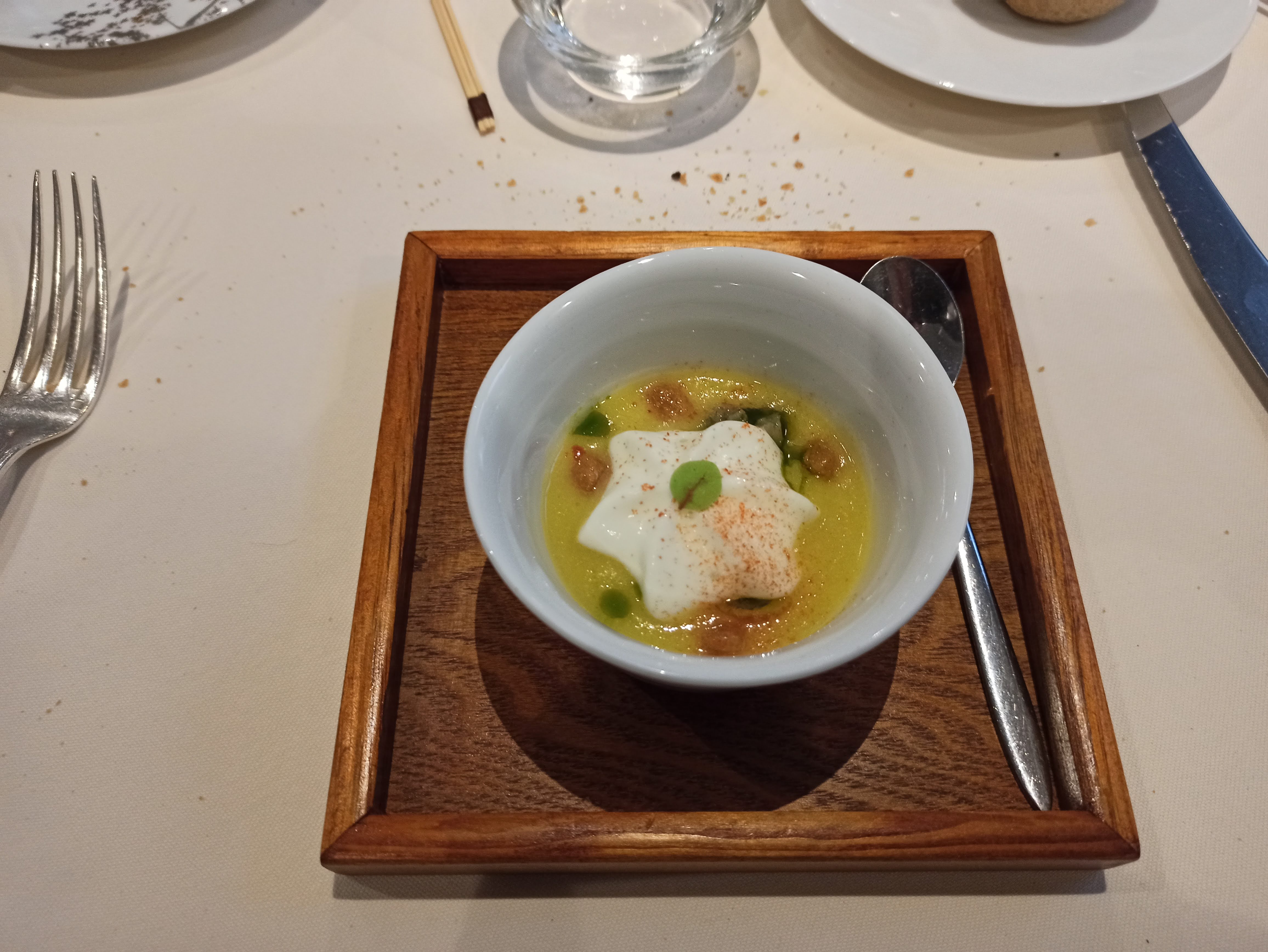 Incroyable déjeuner surprise. Même si c'est une surprise, ils ont pris très au sérieux les allergies à la crème de ma femme.