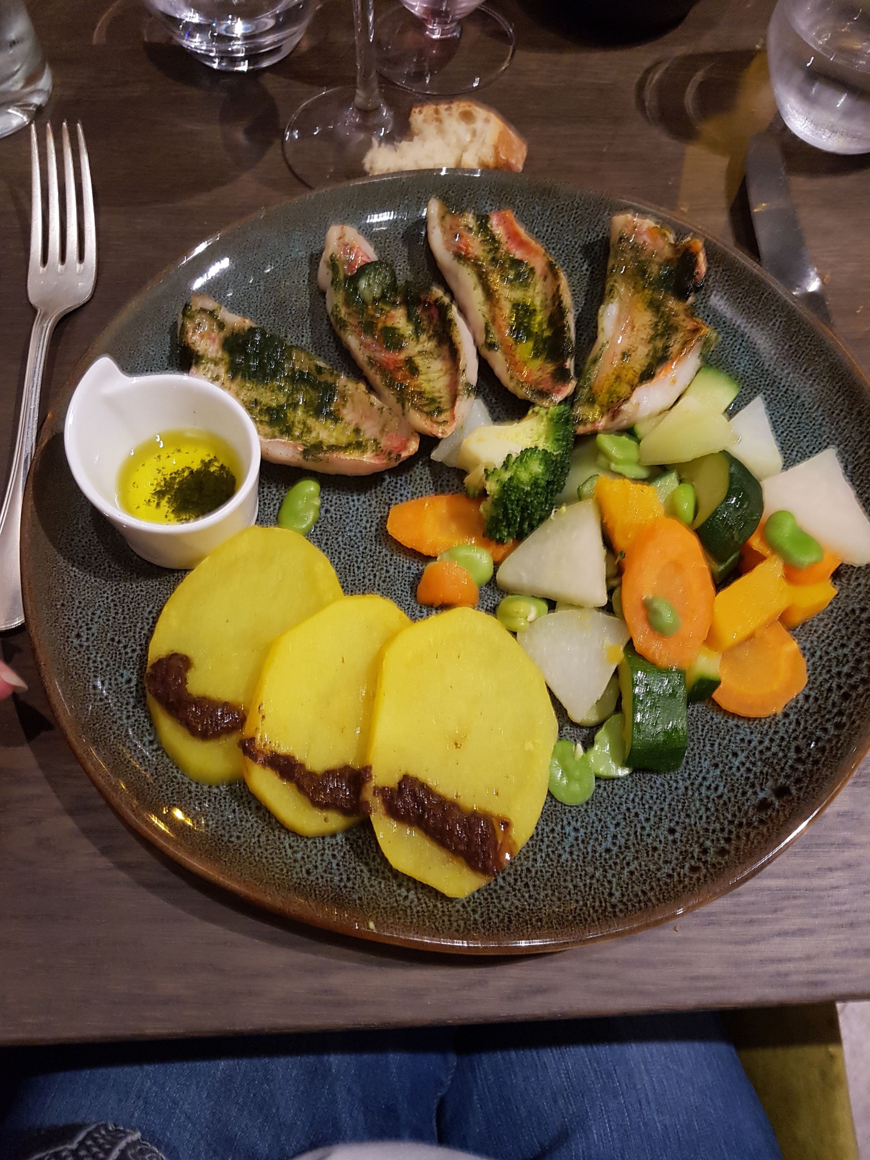 un regal ! acceuil agréable, service parfait. petite salade en entrée un regal, et le filet de rouget une tuerie ! le dessert on n'a pas pu ! la prochaine fois. 4 etoiles et non 5 car la carte est limitée en viande.