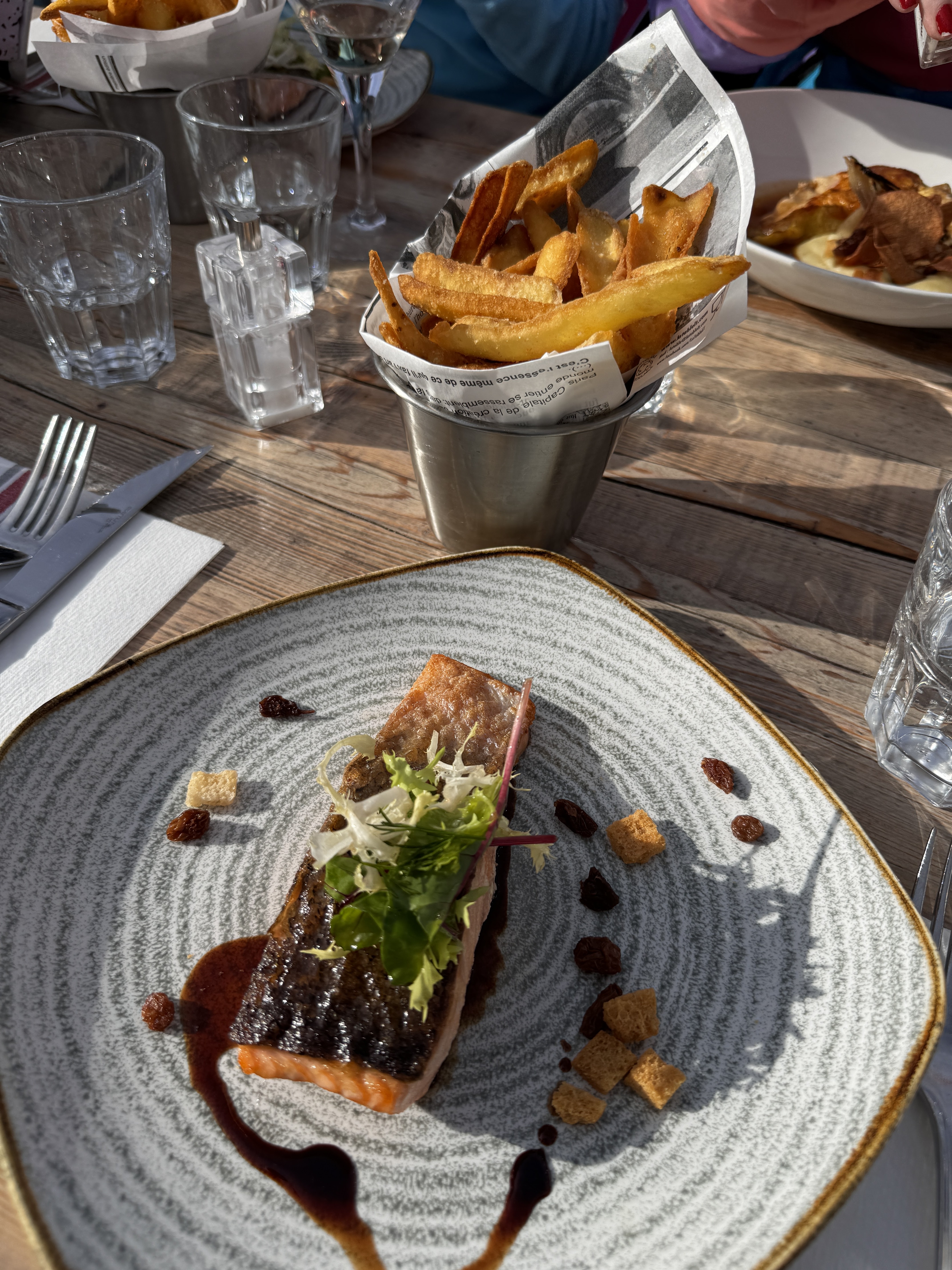 Bonne nourriture - je veillerais toujours à ce que nous skiions ⛷ à l'heure du déjeuner 😉. Excellent service sur une terrasse ensoleillée avec une vue fantastique… de quoi d’autre aurait-on besoin ?