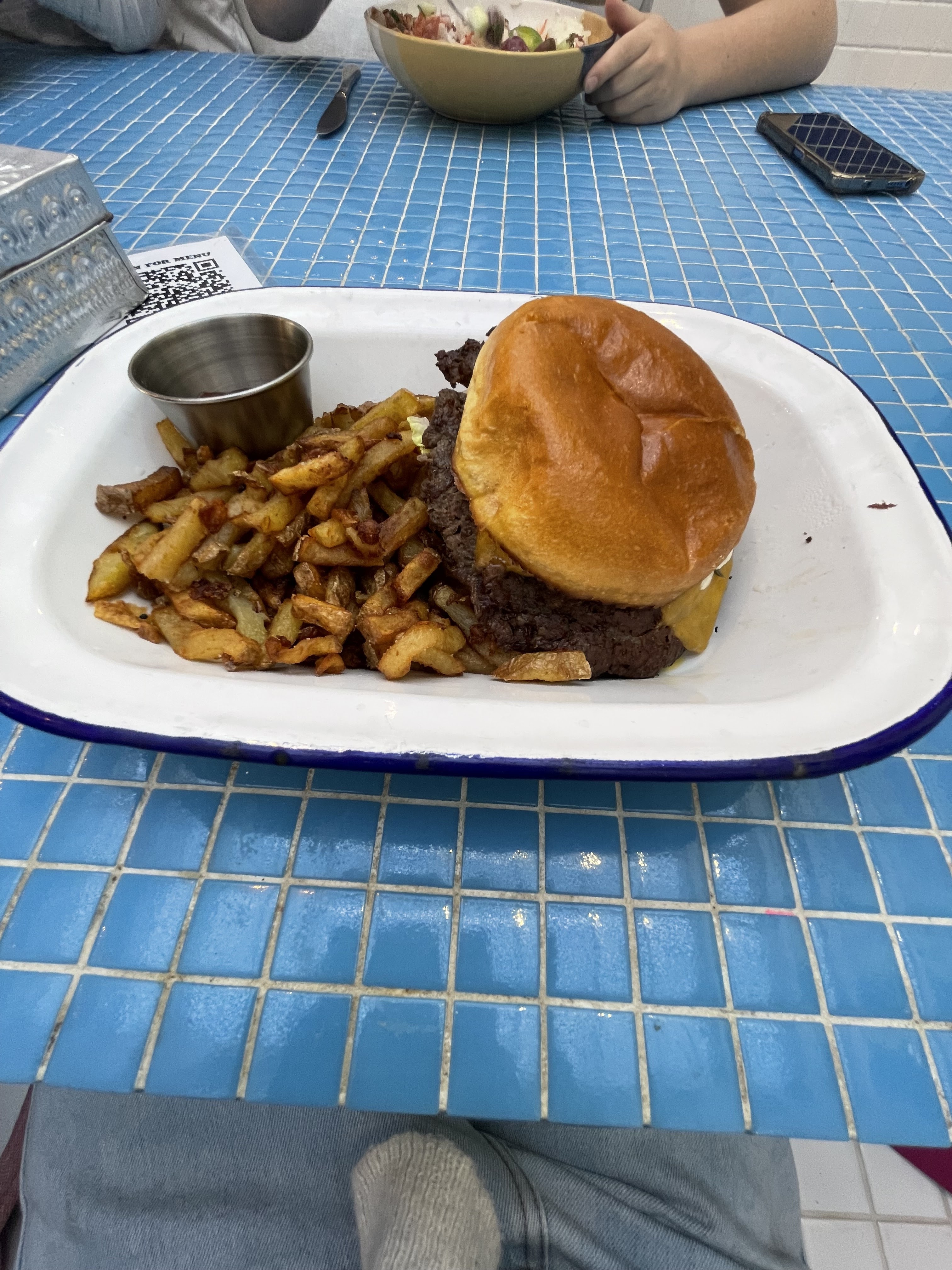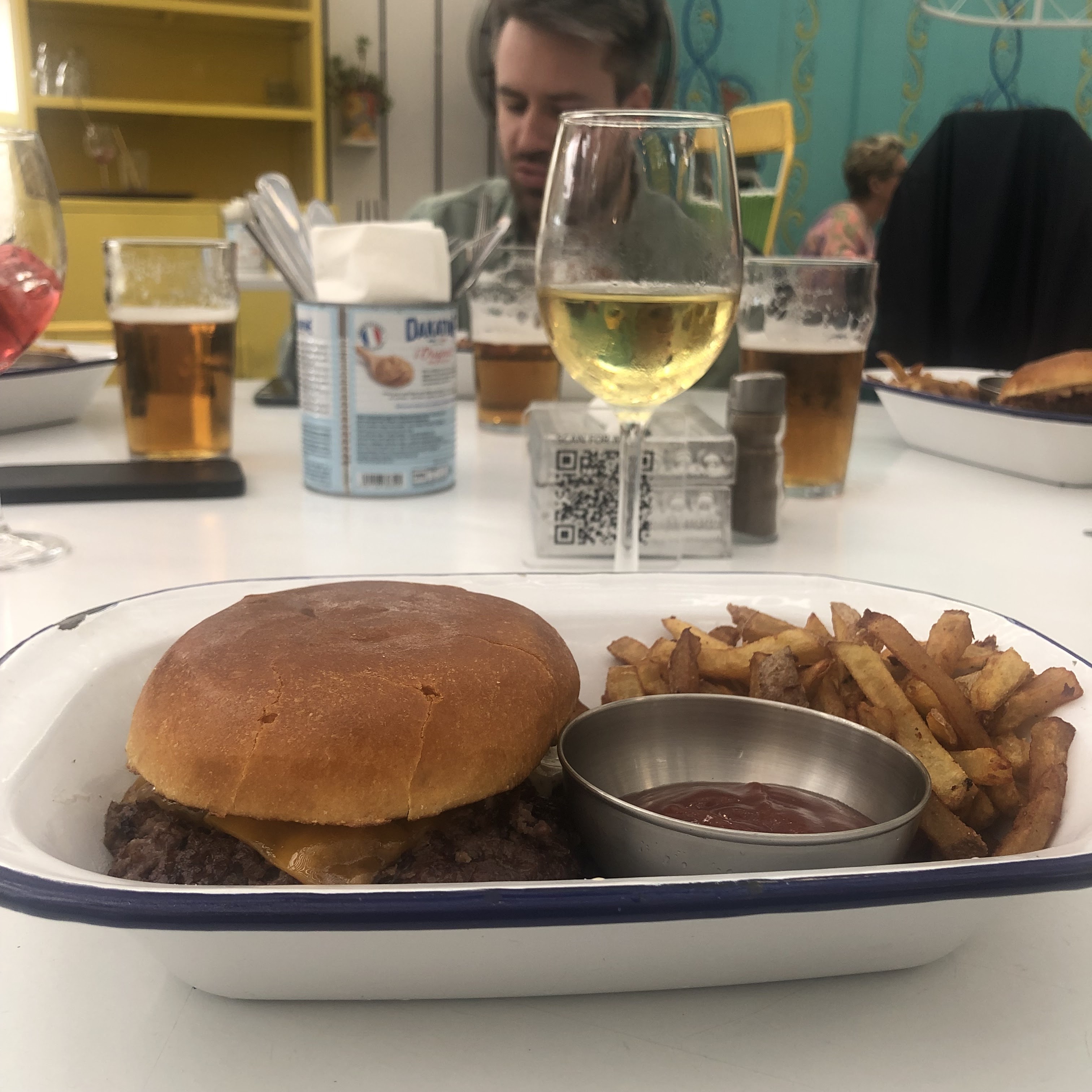 Super sympa ! Dans une rue en retrait du front de mer, déco claire lumineuse le tout sur un fond de musique . Les tables sont bien espacées. Le personnel est agréable. Le burger est très très bon ! Petit bémol : le temps d'attente des repas mais on était samedi soir... Je recommande ! 😁