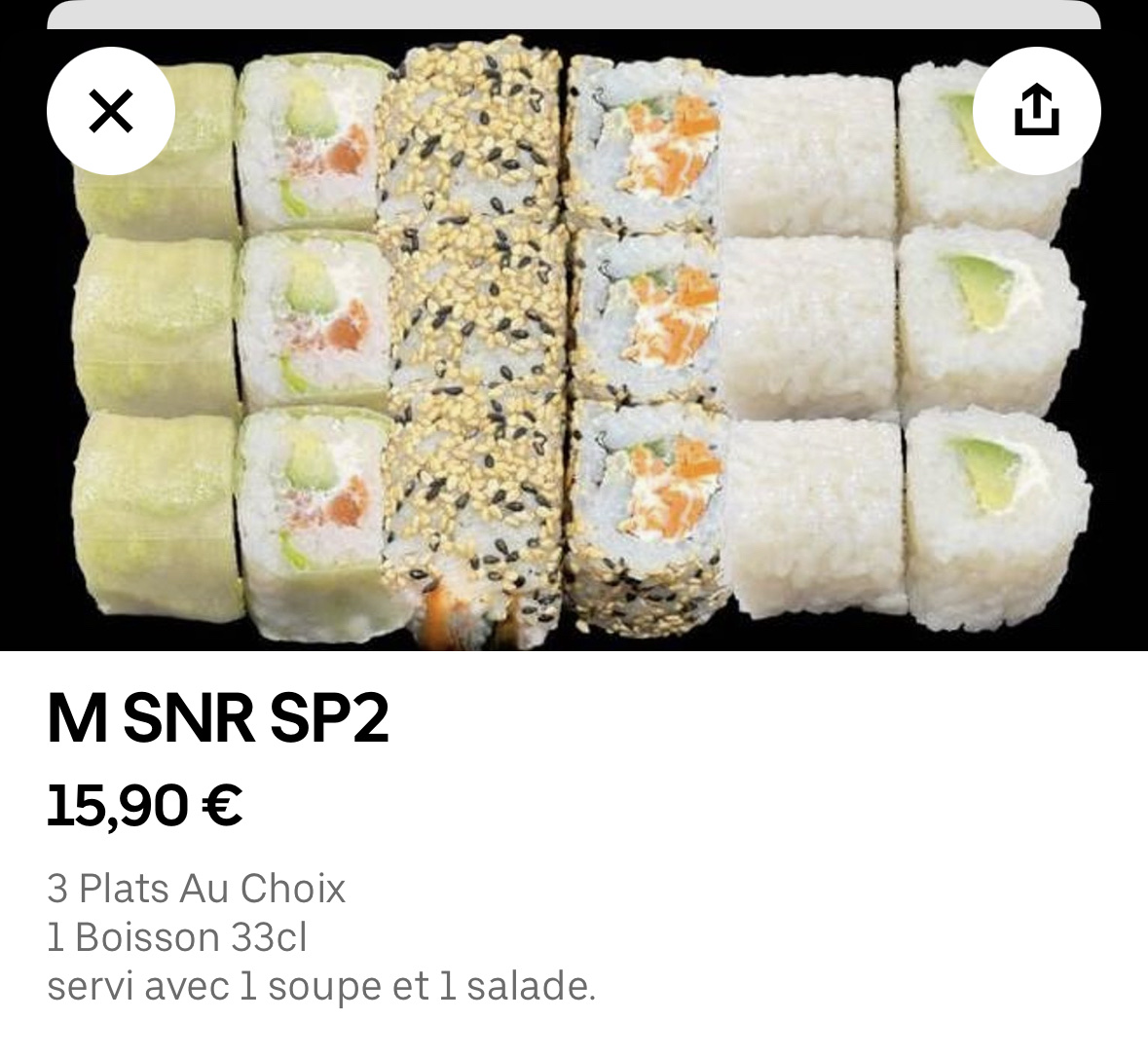 Commande reçu sans soupe et salade, pas comme mentionné sur la description d’uberEats.