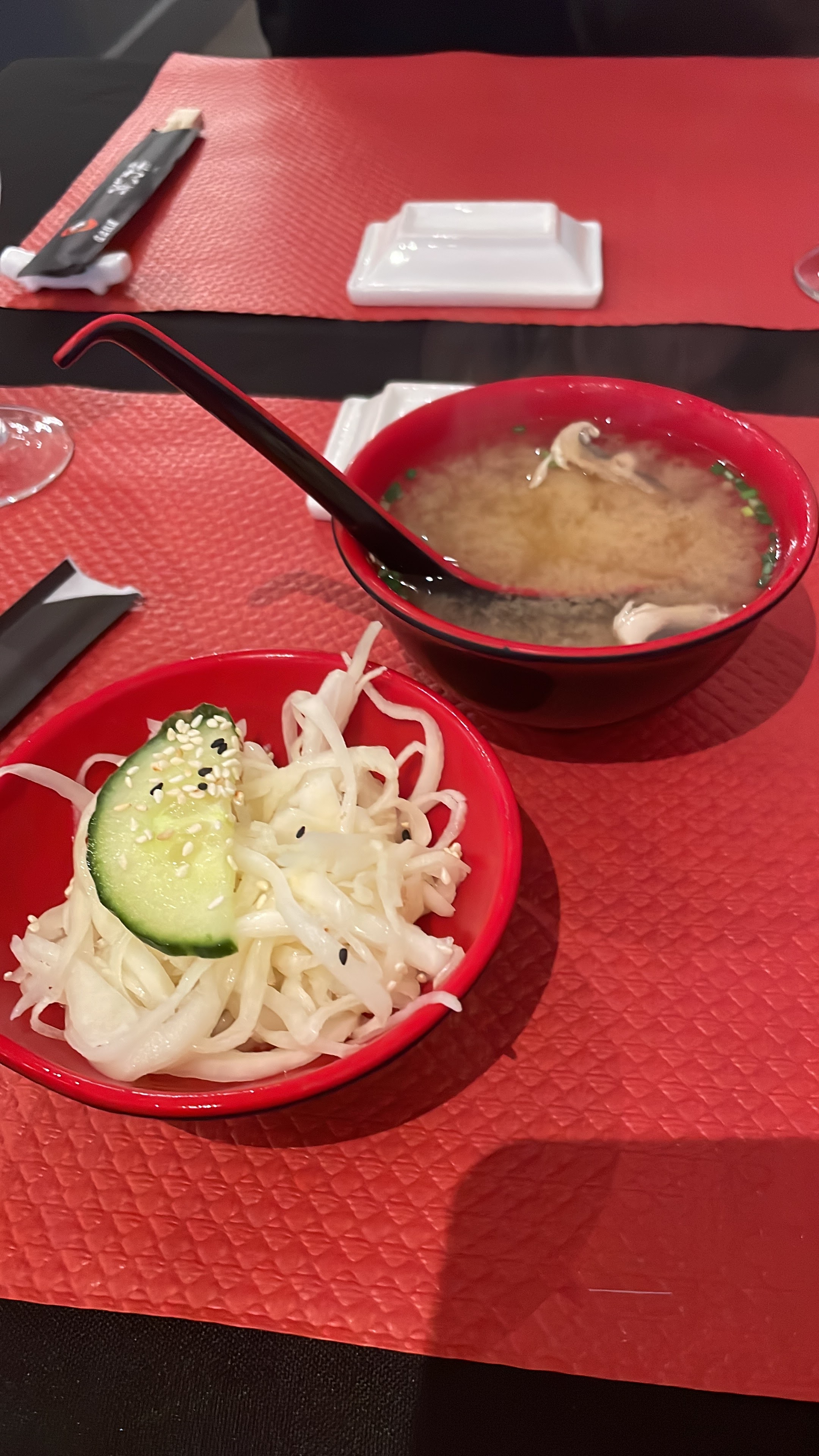 Bon accueil, soupe aucun goût, c'est de l'eau chaude, bon sushi, brochettes pas top.