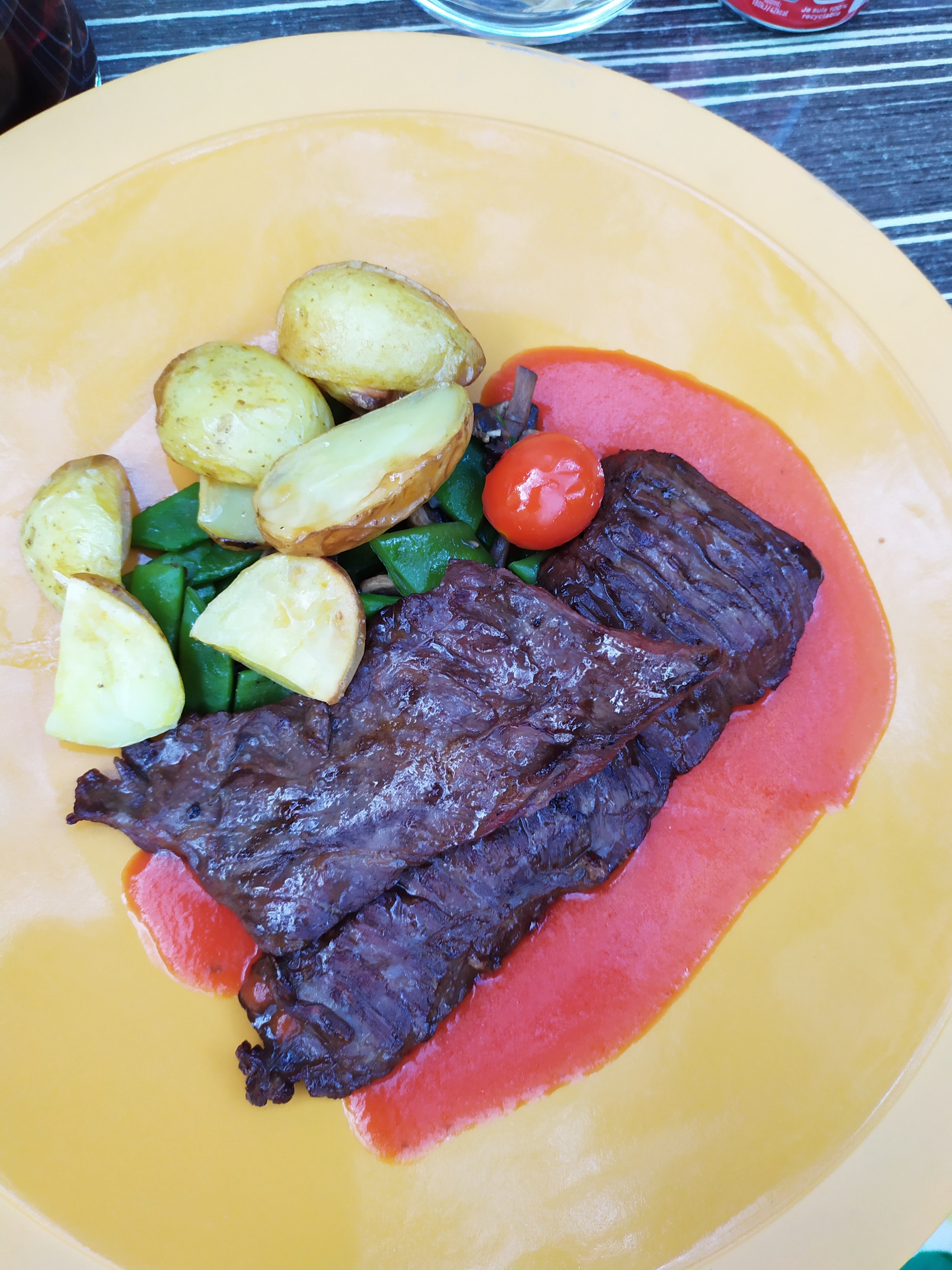 Terrasse ombragée avec brumisateur très agréable. Grillades au feu de sarment de vigne excellentes. Personnel agréable. Excellent rapport qualité-prix.