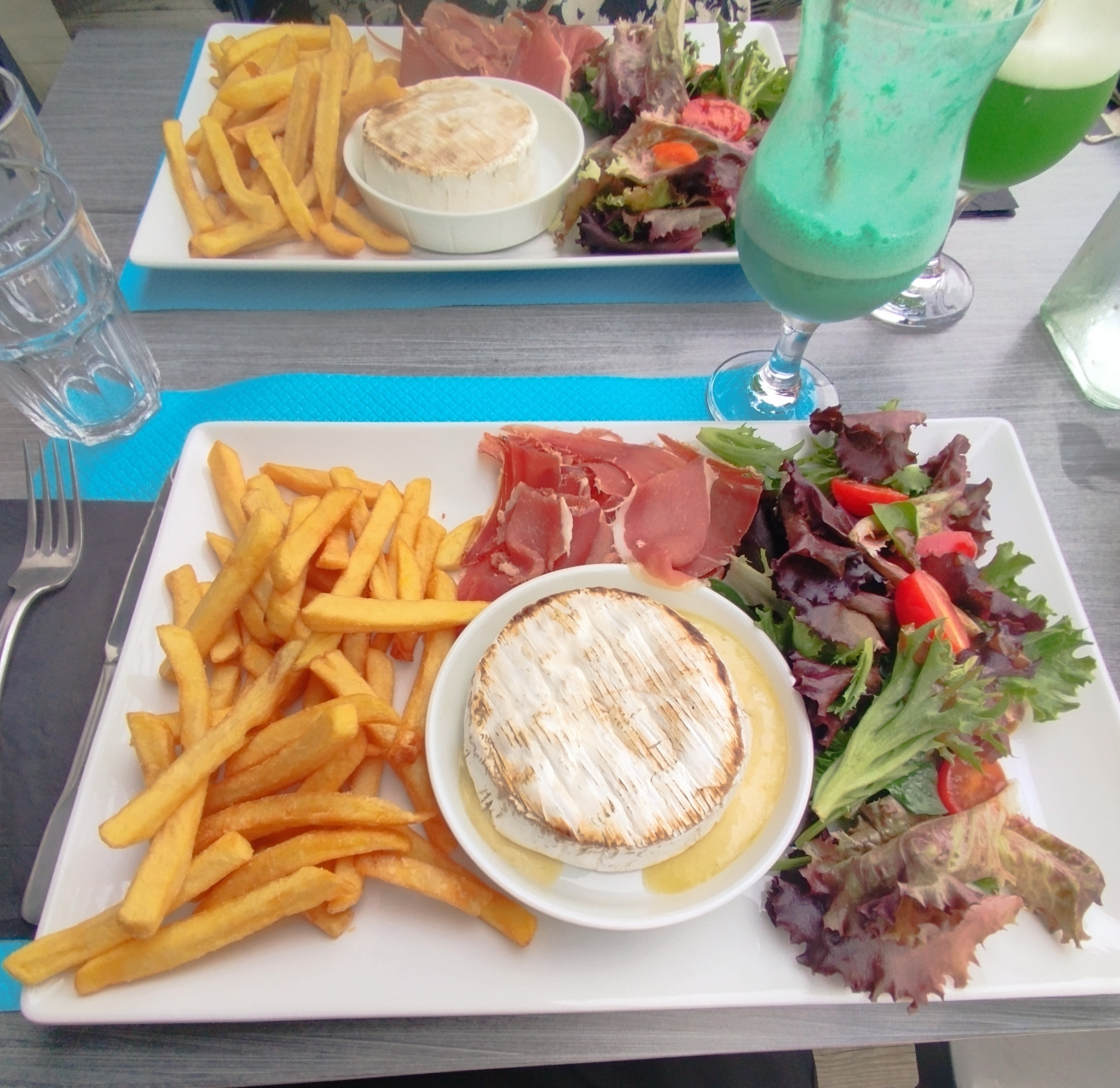 EXCELLENT plateau jambon avec fromage brebis et tapas tomates sur pain grillé et burger avec frites maison le top 👍👍plus le petit déjeuner aussi