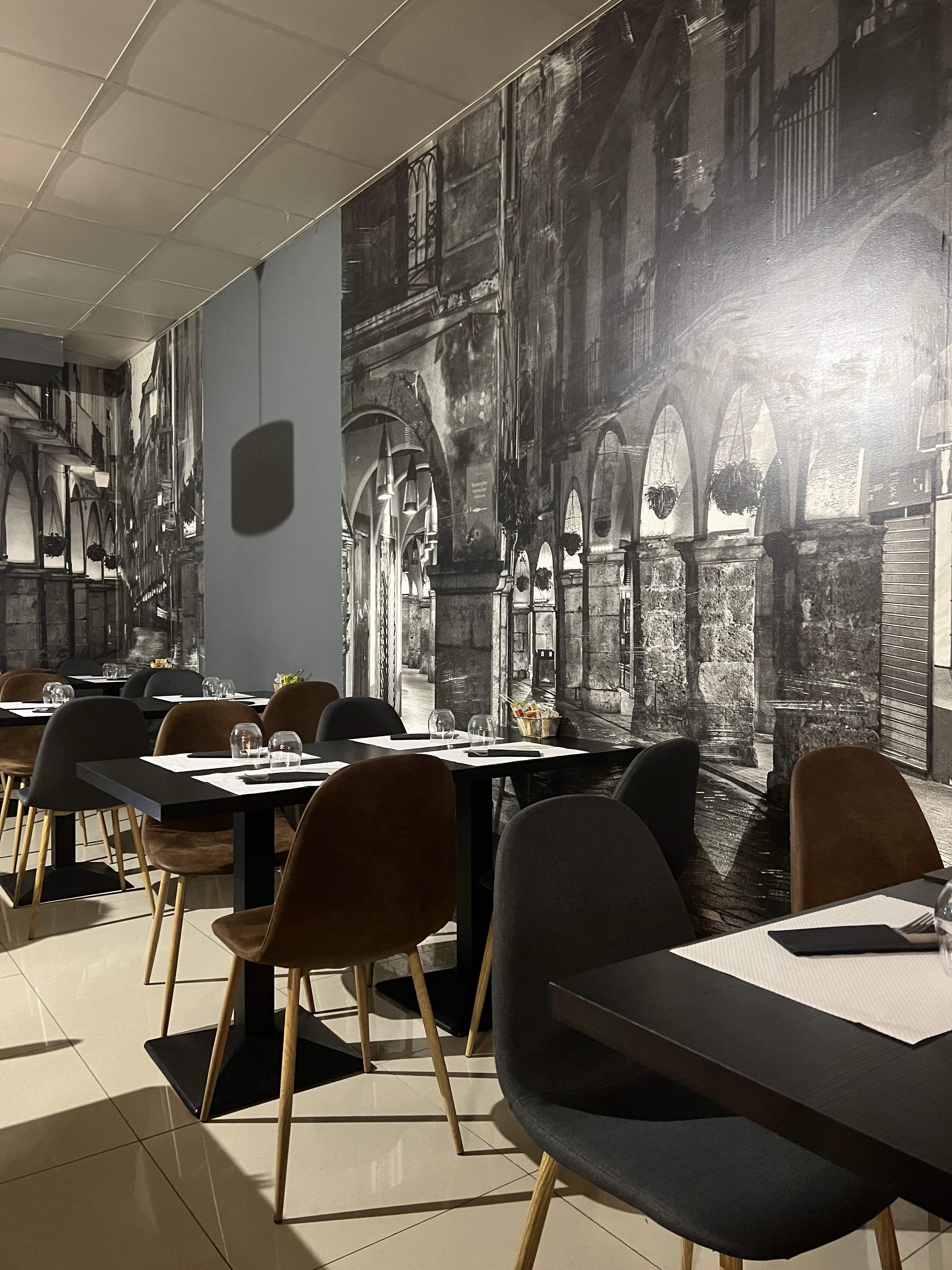 Ce restaurant et aussi beau de l'intérieur que de l'extérieur, la présentation est parfaite rien a dire, les cuisiniers m'ont expliqué qu'il faisait tous maison: le pain (que je trouve délicieux)les pâtes, les pizzas, les desserts à part la viande, salade les frites qui sont malheureusement congelés mais elles sont très bien assaisonner, pour le service j'ai mis 4 étoiles ils sont tous italien donc ils ont un peu de mal à parler français mets les places sont bien présentées les serveurs sont polis et essaie de faire de leur mieux au niveau du langage et ça se voit, enfin pour terminer l'ambiance se rapproche un peu avec le service car vu qu'ils sont italien il y a du coup pas beaucoup de discussions avec les clients à part pour les présentations, il y a quand même une petite musique relaxante qui nous detents. Je vous conseil restaurant mise à part quelques défauts on y mange très bien d'ailleurs je vous conseille la pizza kebab il y a une super sauce avec des feuilles de salade et elle est je la trouve délicieuse 😋😋
