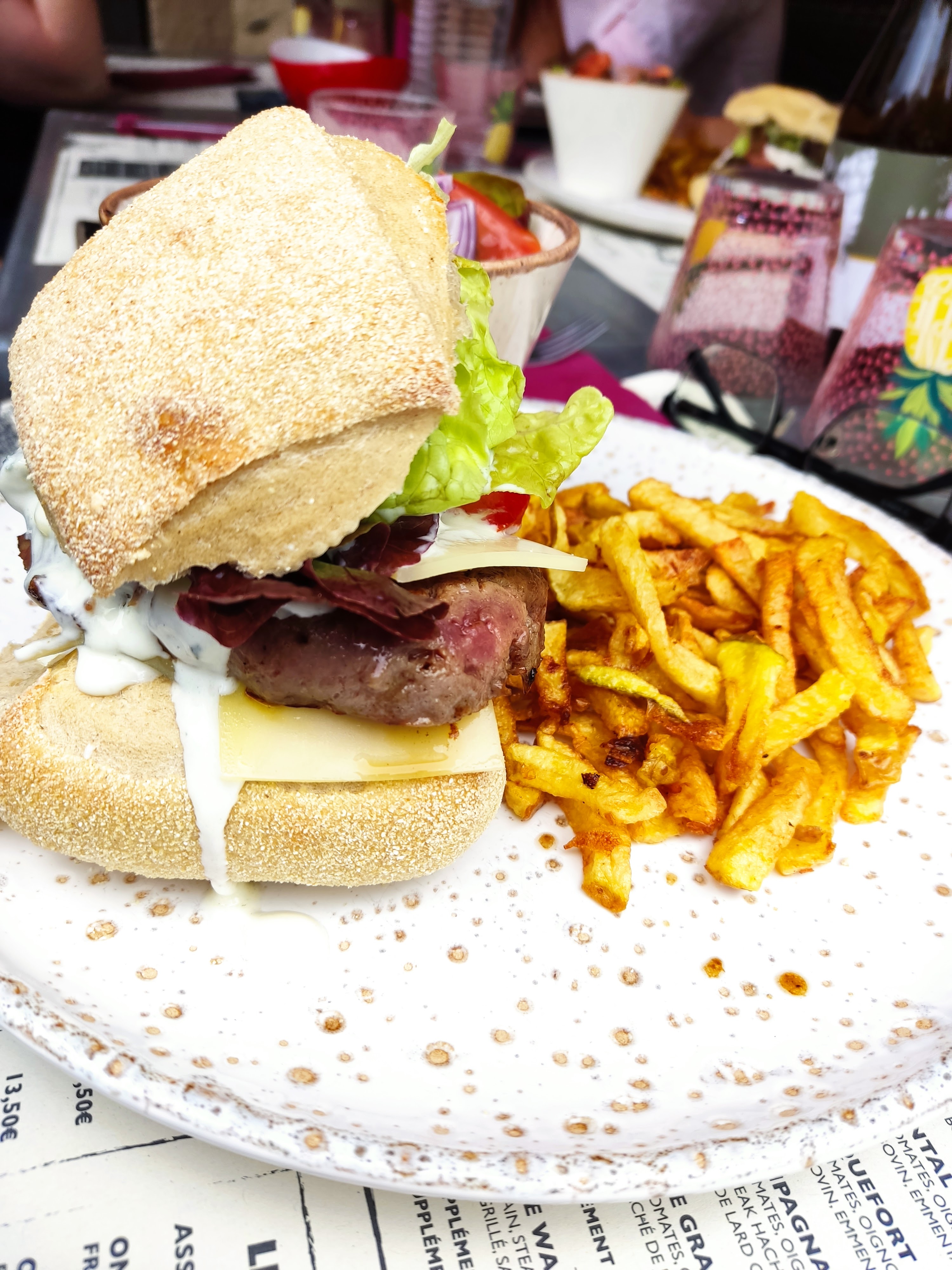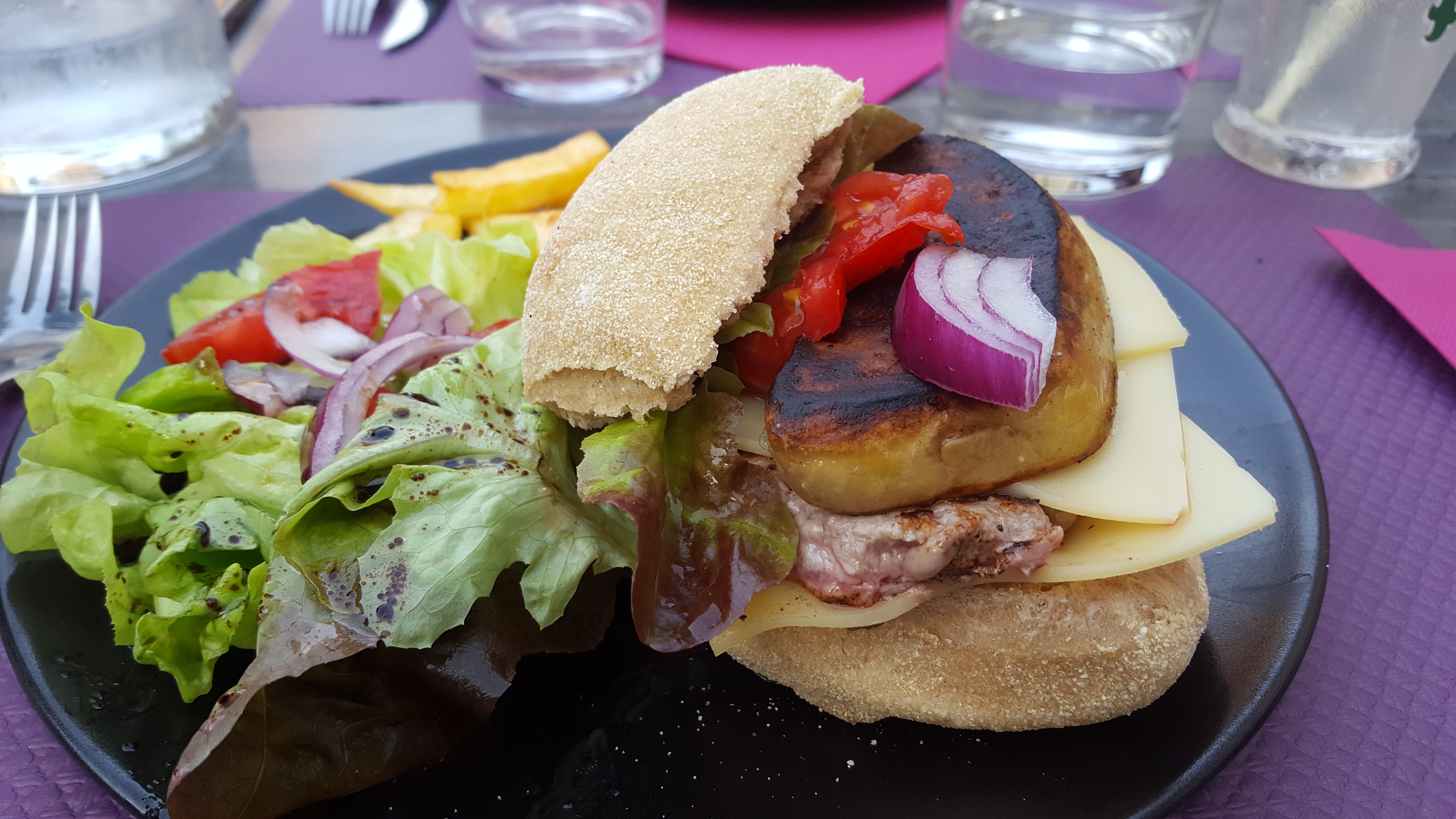 Burger de l’espace ! Pain maison, viande de l’exploitation des gérants, c’est tout simplement unique ! J’ai pris le « cantal » et c’est une tuerie, adresse incontournable sur Najac !